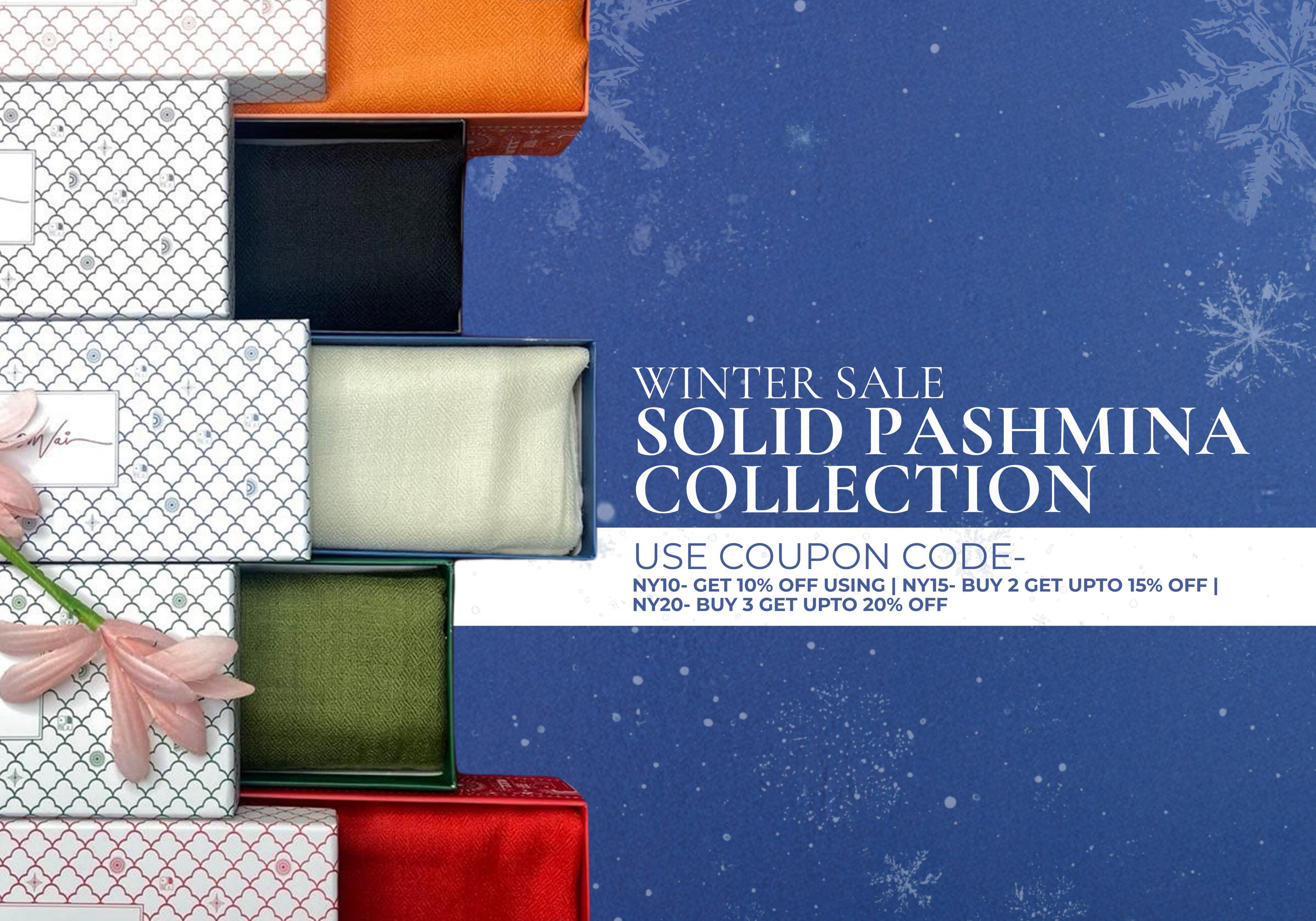 OMVAI Solid Pashmina Shawl Combo Gift Set in Pure Cashmere wool (Set of 2 - For HIM and for HER)