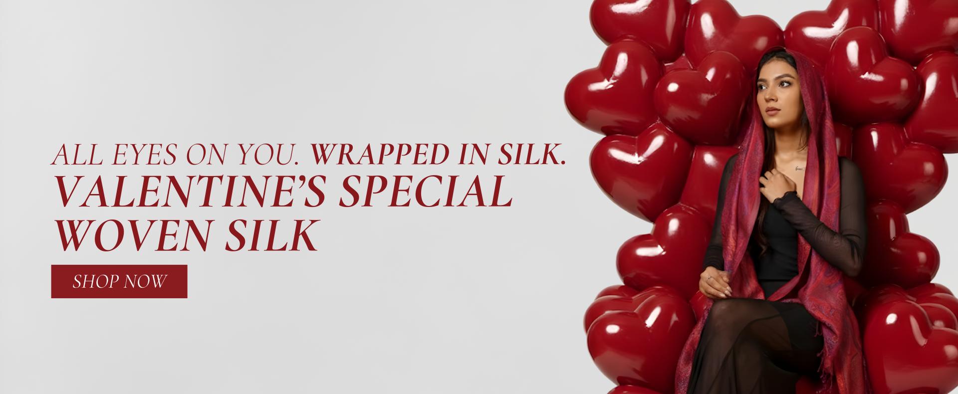 OMVAI Ornamental Paisley Premium Woven Silk Stole | Flamingo Pink