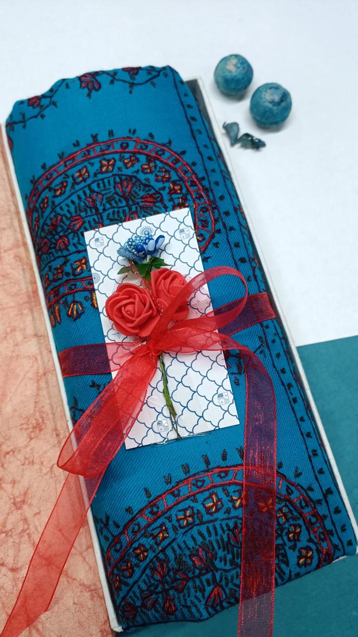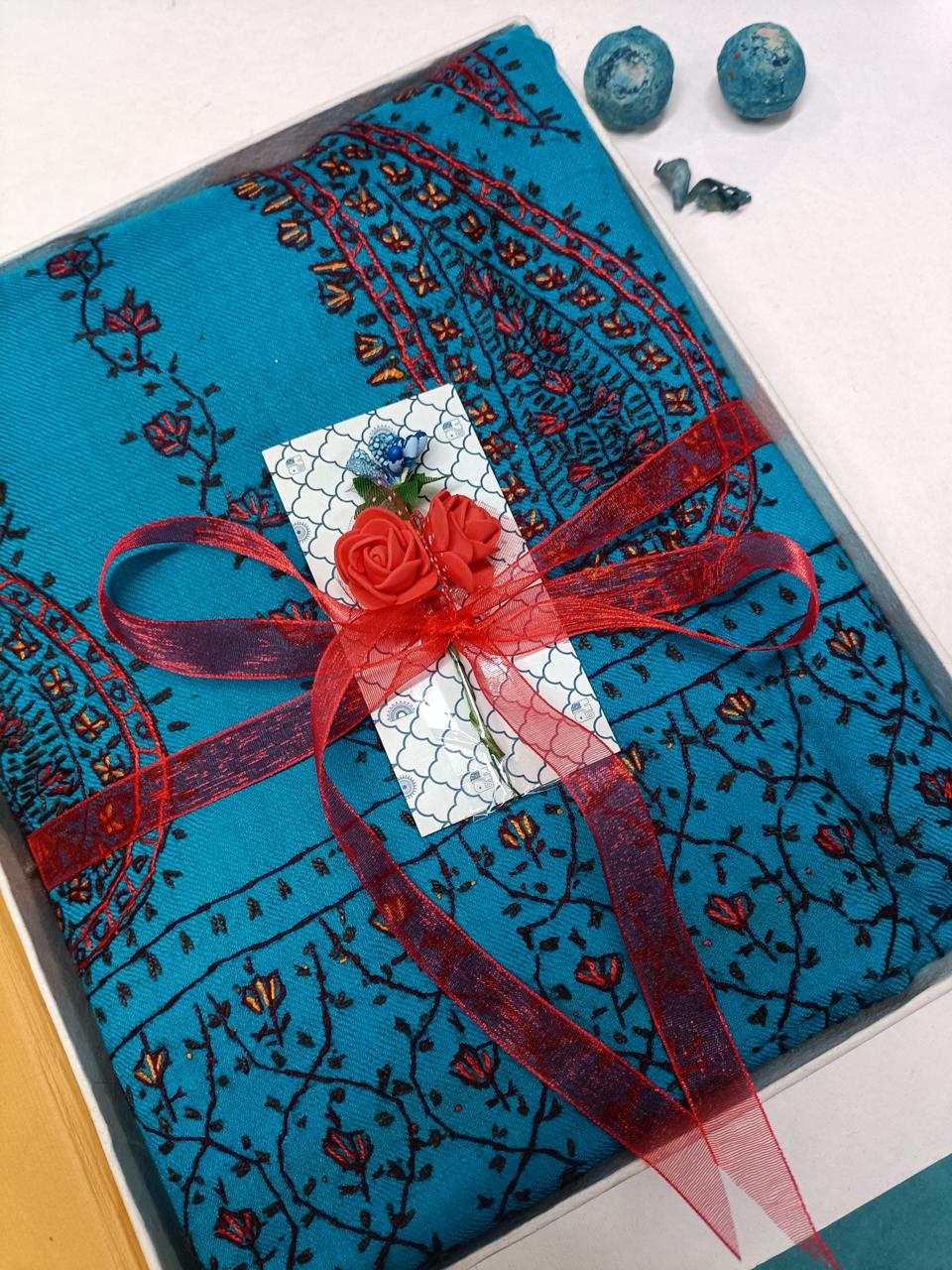 Bahir means Brilliance and it is an elegant blue embroidered shawl, both for men and women, with all over intricate embroidery using silk threads. The traditional motif of paisley and flower jaal gives it a royal Mughal look for the perfect pashmina.