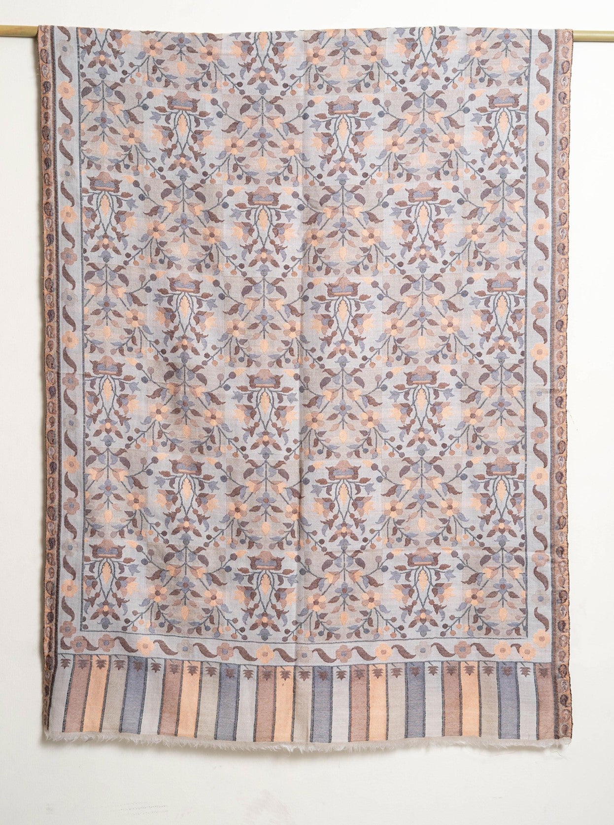 BOX BUTA is a traditional ethnic design woven by the Kashmiris using beautiful colors and patterns. This shawl indeed adds grace and beauty to the person who adorns it. It is a beautiful woven shawl, both for men and women, with all over intricate weaving using exotic colors.