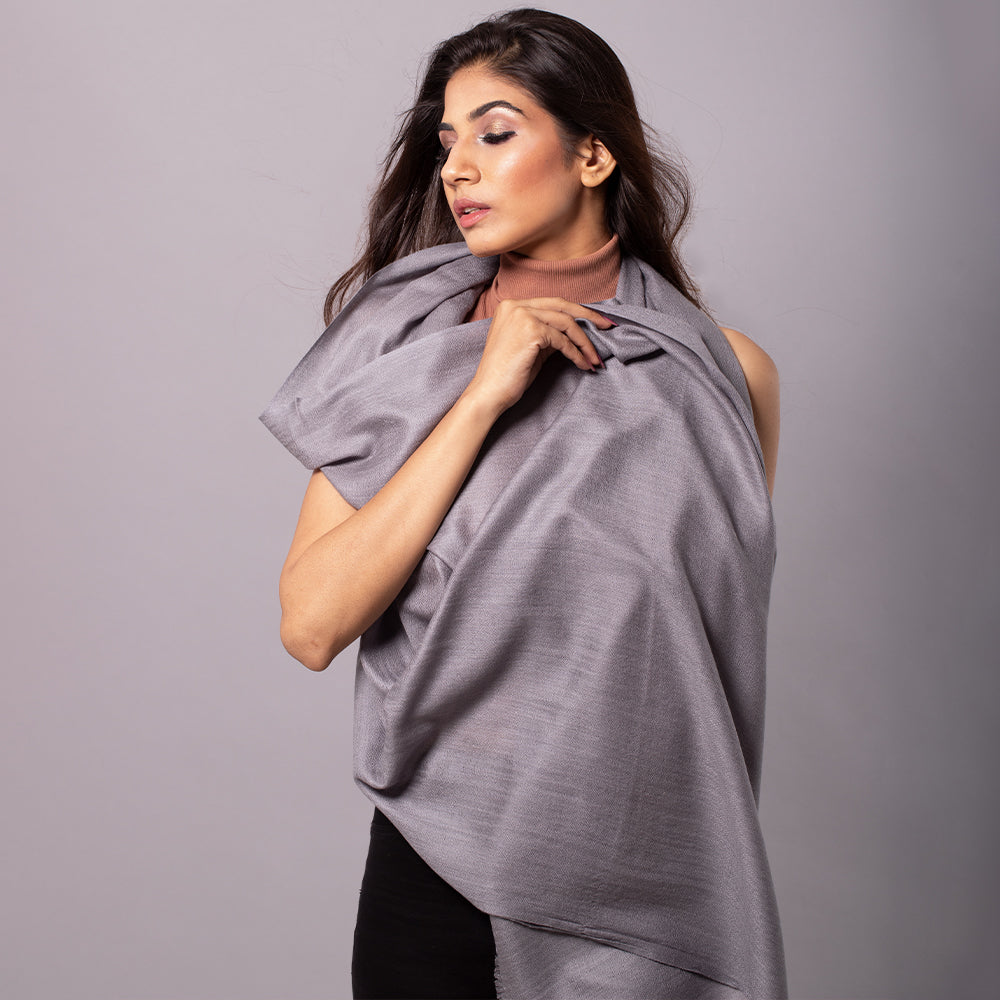OMVAI presents to you the premium quality of authentic Solid Pashminas collection where every single piece comes from the craftsmen of Kashmir. These stoles are woven using fine cashmere and are crafted with utmost finesse and are super soft. It is warm, cozy and feathery light.