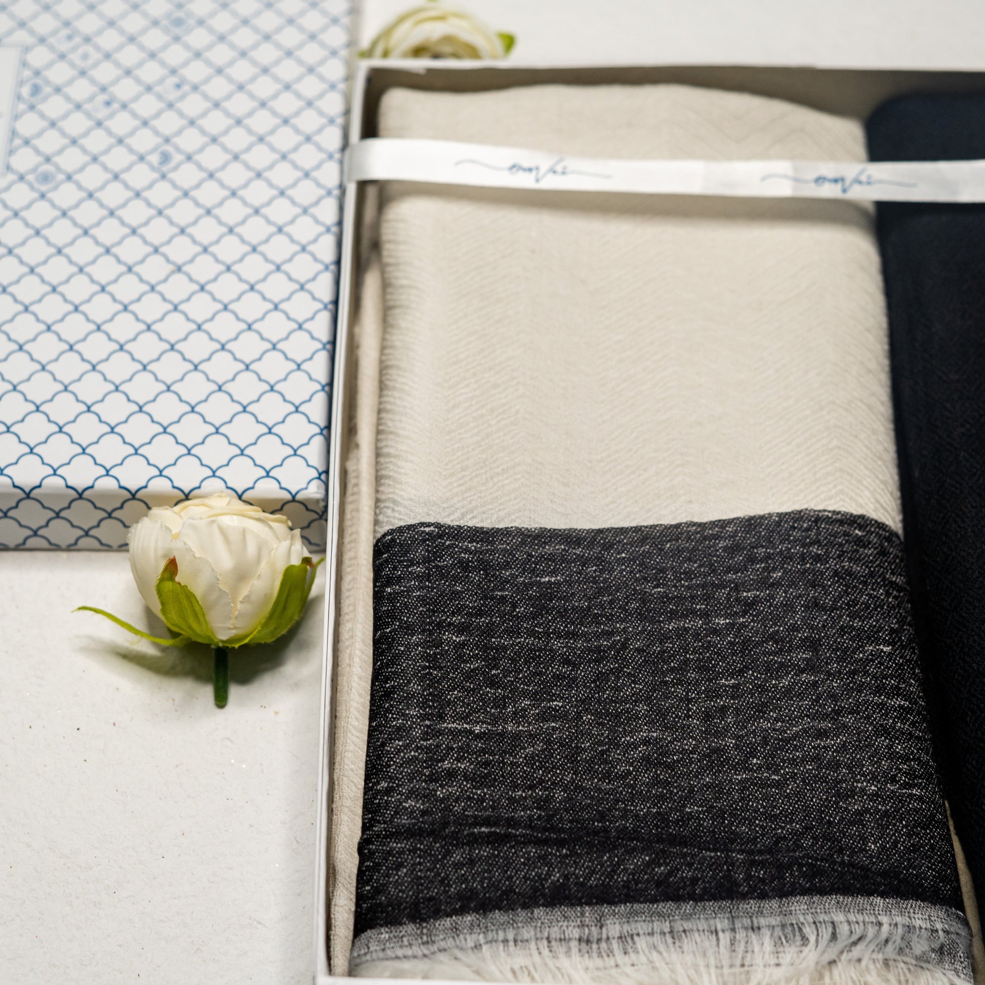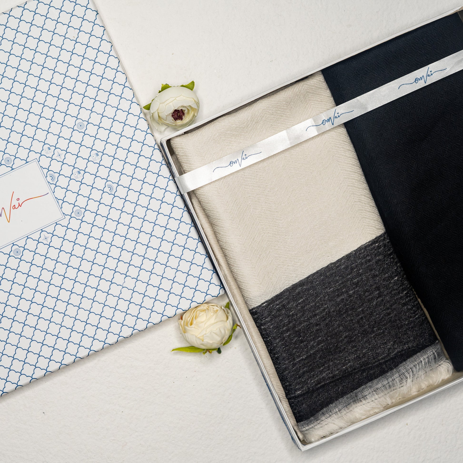 OMVAI Patterned Pashmina Wrap and Solid Pashmina Combo Gift Set in Pure wool (Set of 2 - For HIM and for HER)
