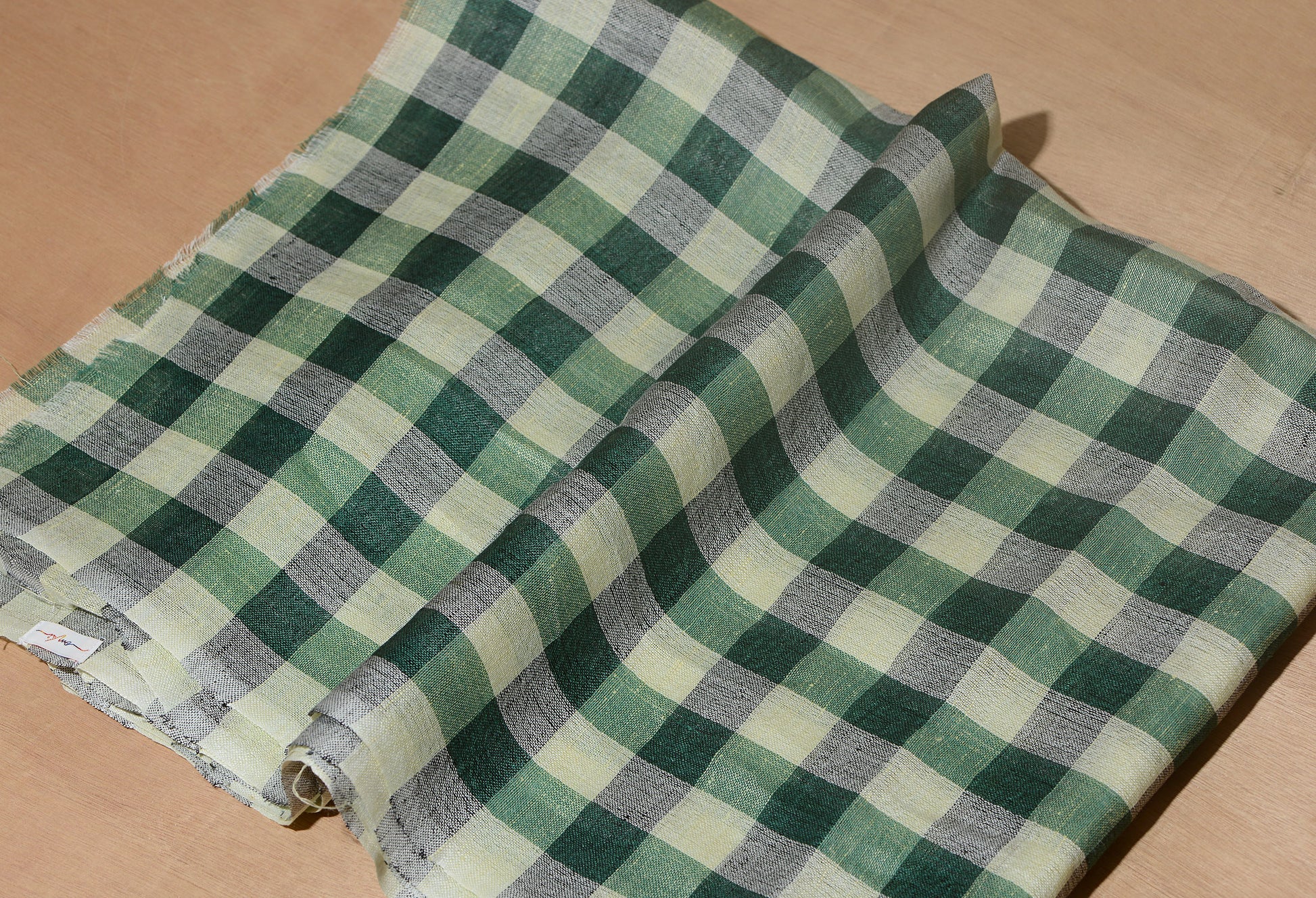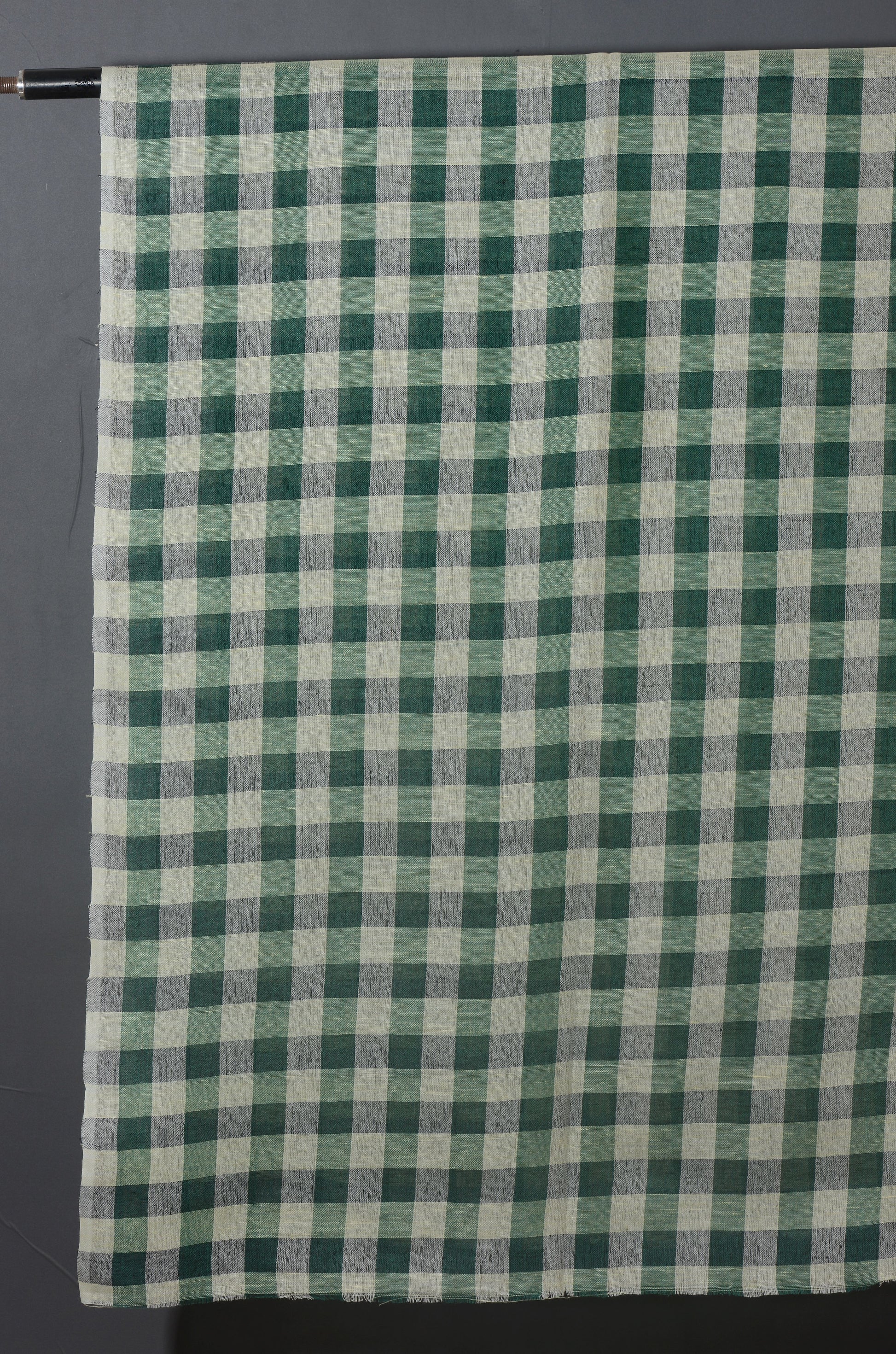Linen Classic Gingham Checks - Green with Butter cup yellow