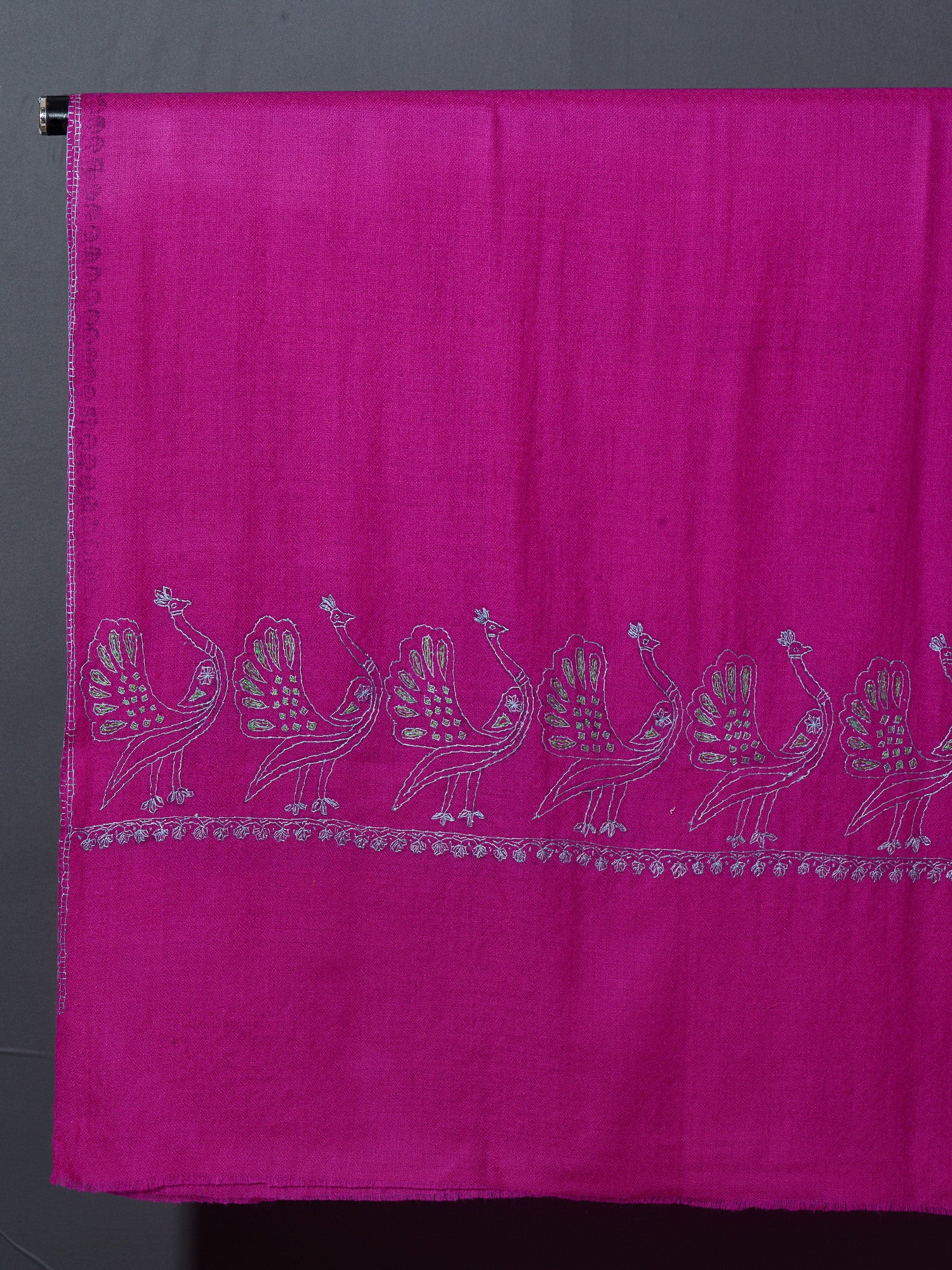 MAYURA, the Peacock Magnificent Hand Embroidered Stole - Orchid Pink