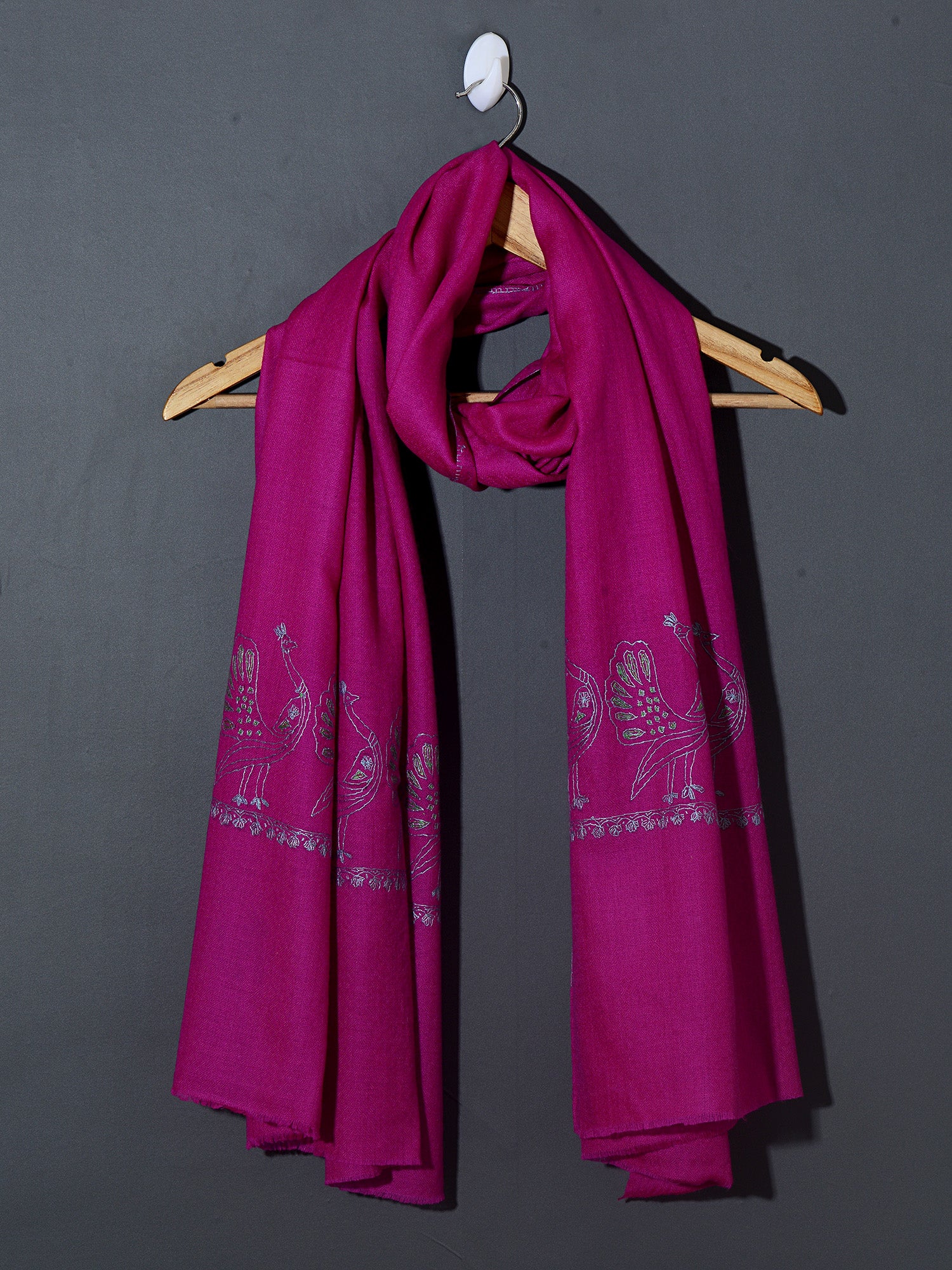 MAYURA means a peacock, the most beautiful bird. It symbolizes beauty ,love, magnificence, elegance and has been used as an embroidery motif in various textiles. A beautiful Indian bird which we have tried to make in various colors of our super soft stoles is a must buy to add to your lovely collection. Its unique, desirable and exotic. The intricate pattern makes the pashmina look very graceful and opulent.