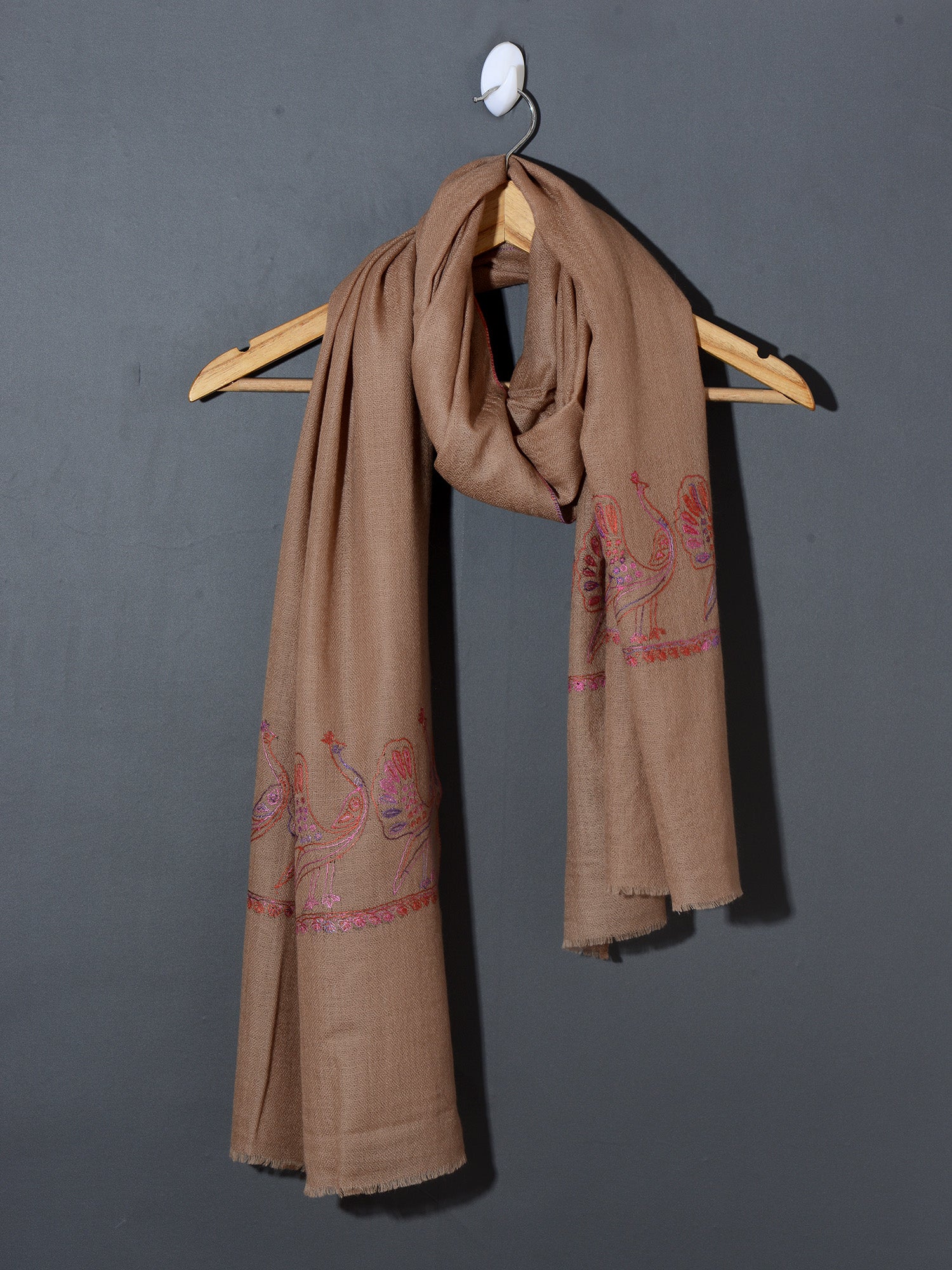 MAYURA means a peacock, the most beautiful bird. It symbolizes beauty ,love, magnificence, elegance and has been used as an embroidery motif in various textiles. A beautiful Indian bird which we have tried to make in various colors of our super soft stoles is a must buy to add to your lovely collection. Its unique, desirable and exotic. The intricate pattern makes the pashmina look very graceful and opulent.