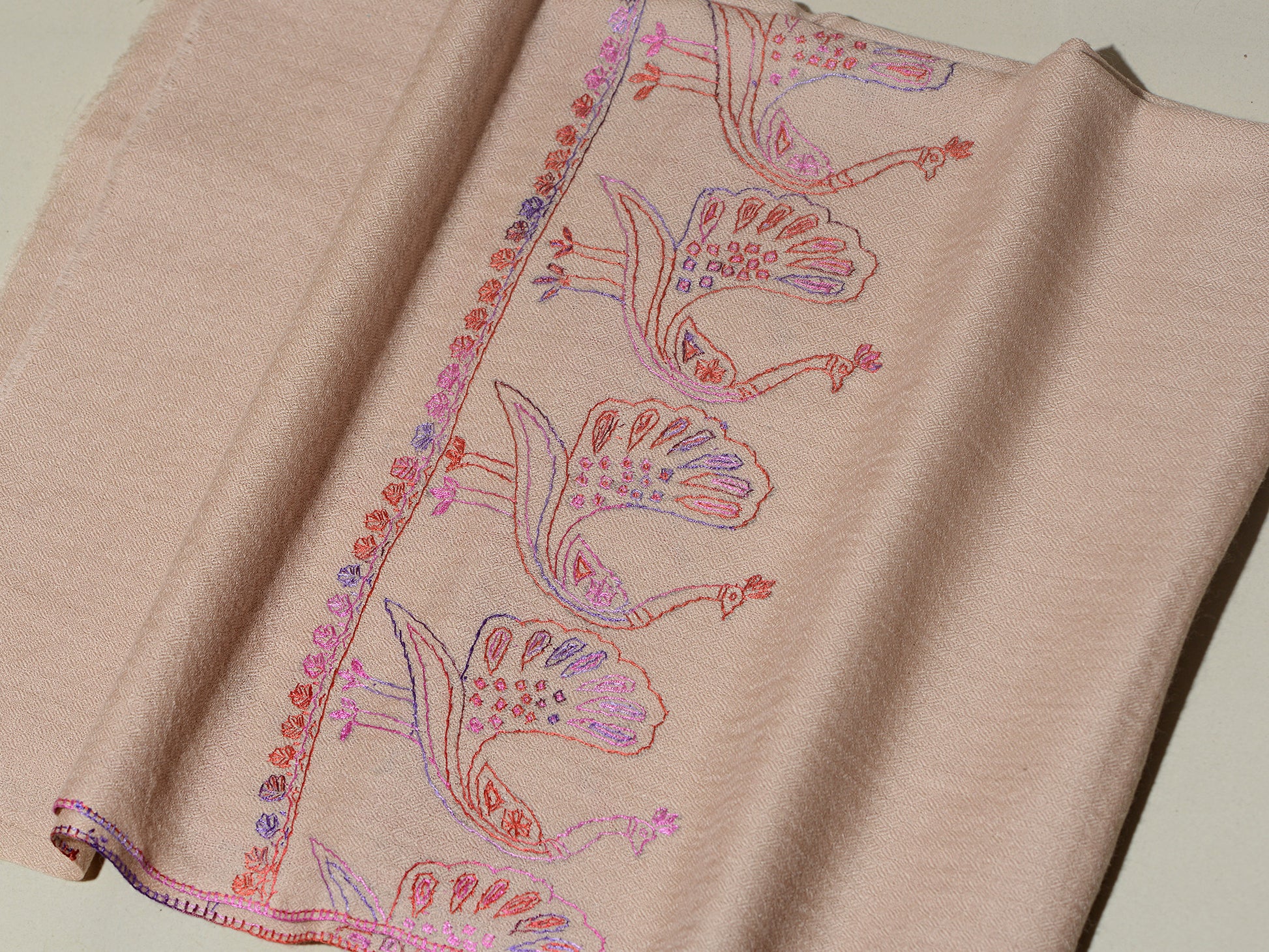 MAYURA, the Peacock Magnificent Hand Embroidered Stole -Powder Pink
