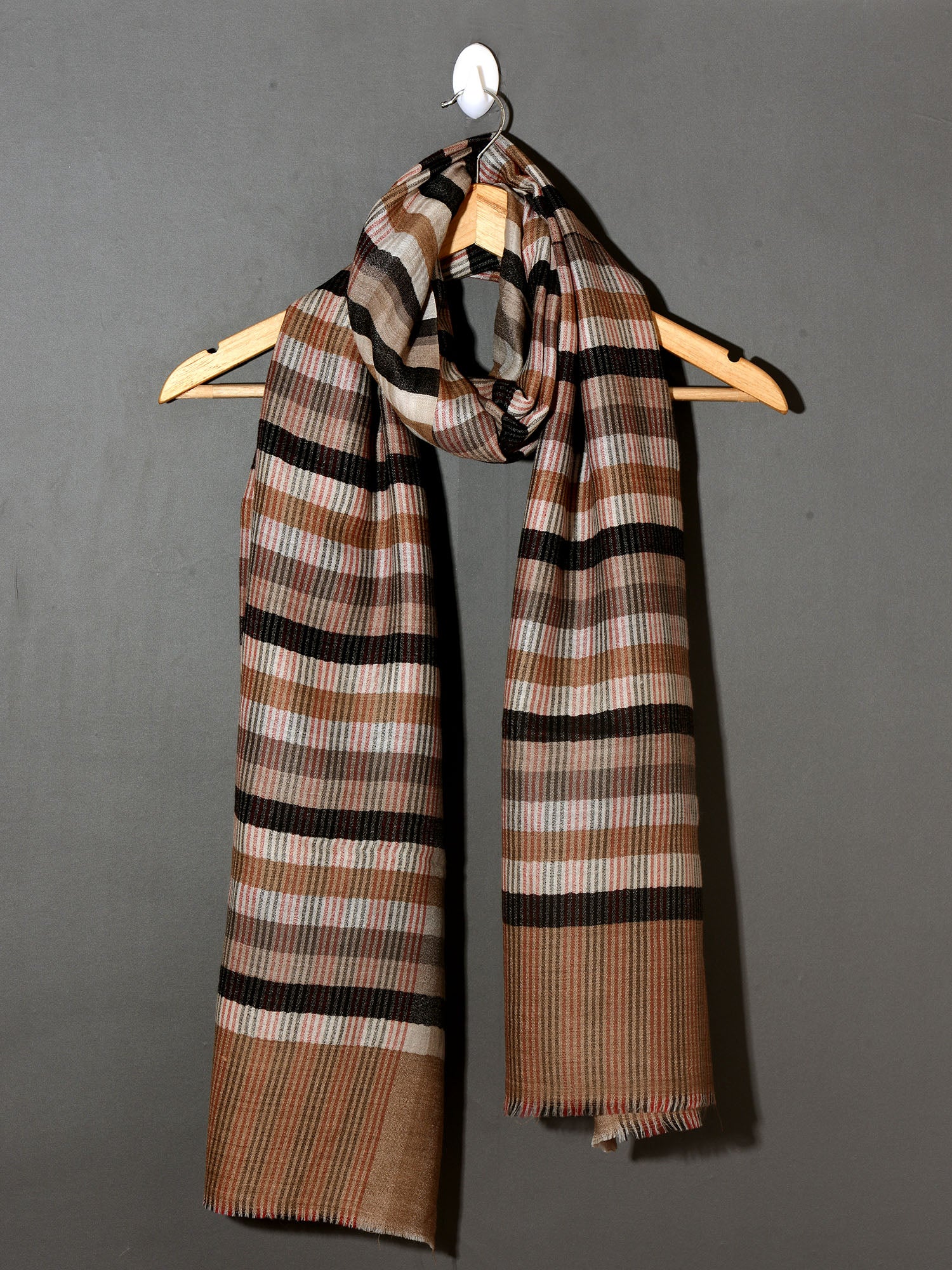 Multi Checks Kashmiri Patterned Pashmina Stole - Multi Browns