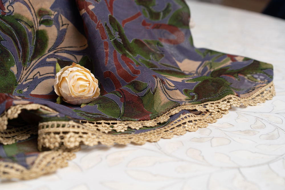 OMVAI Abstract Flora Chiffon Stole - Lavender