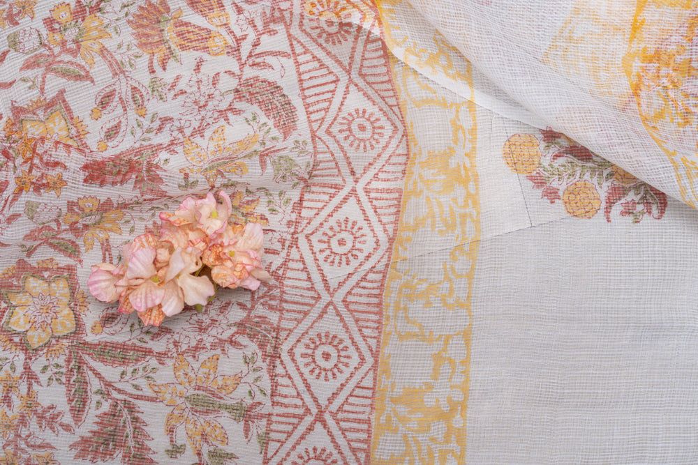 It is a beautiful hand block printed dupatta which adds grace and makes it look more opulent and classy.