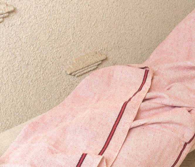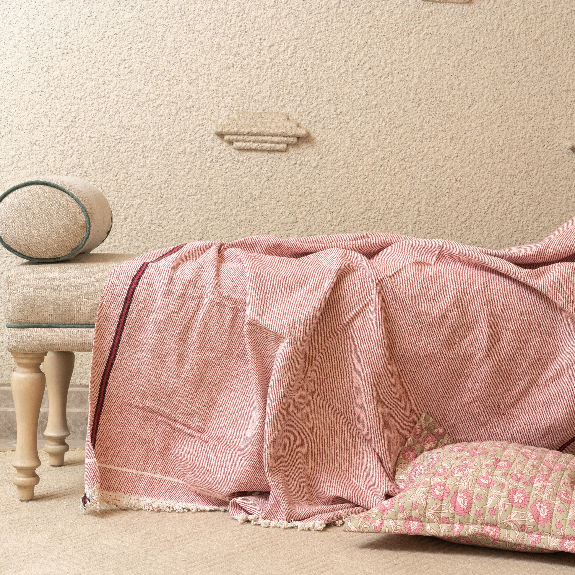 OMVAI Lehar Border Cotton Woven Throw Blanket / Comforter - Red