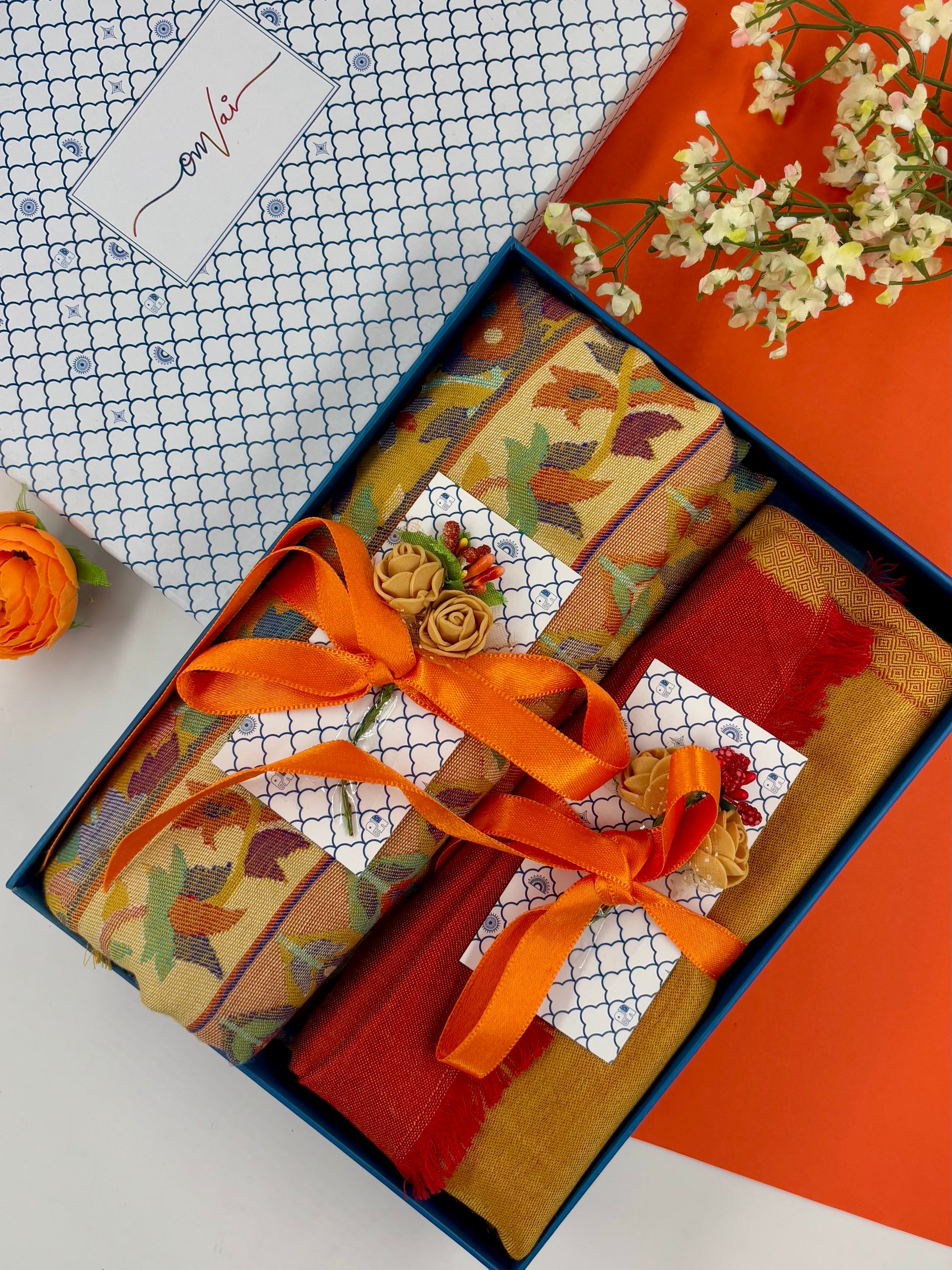 OMVAI Modal Combo Gift Set in Ochre Kani and Reversible Modal in Fine Quality (Set of 2) - For HIM and for HER