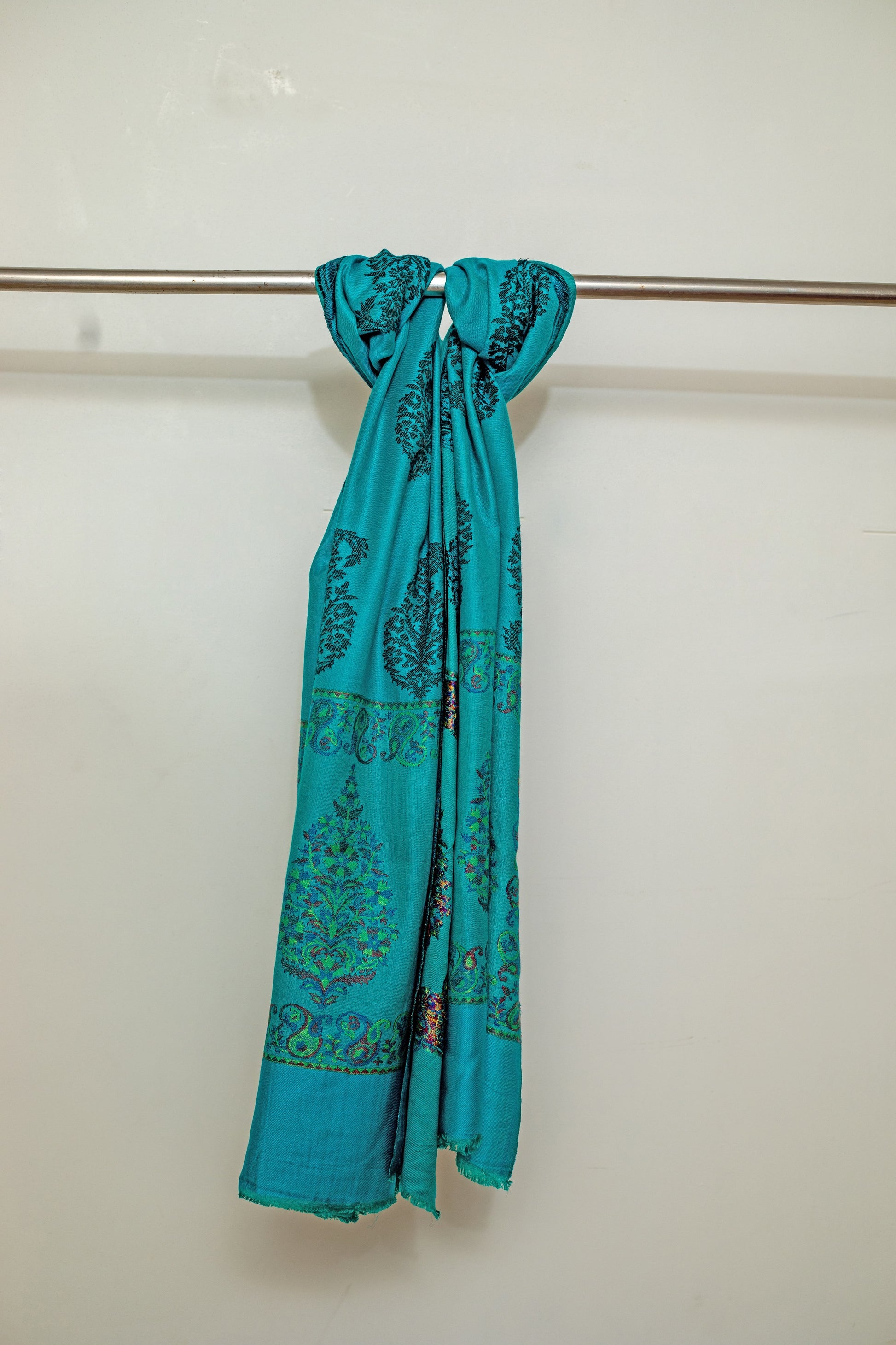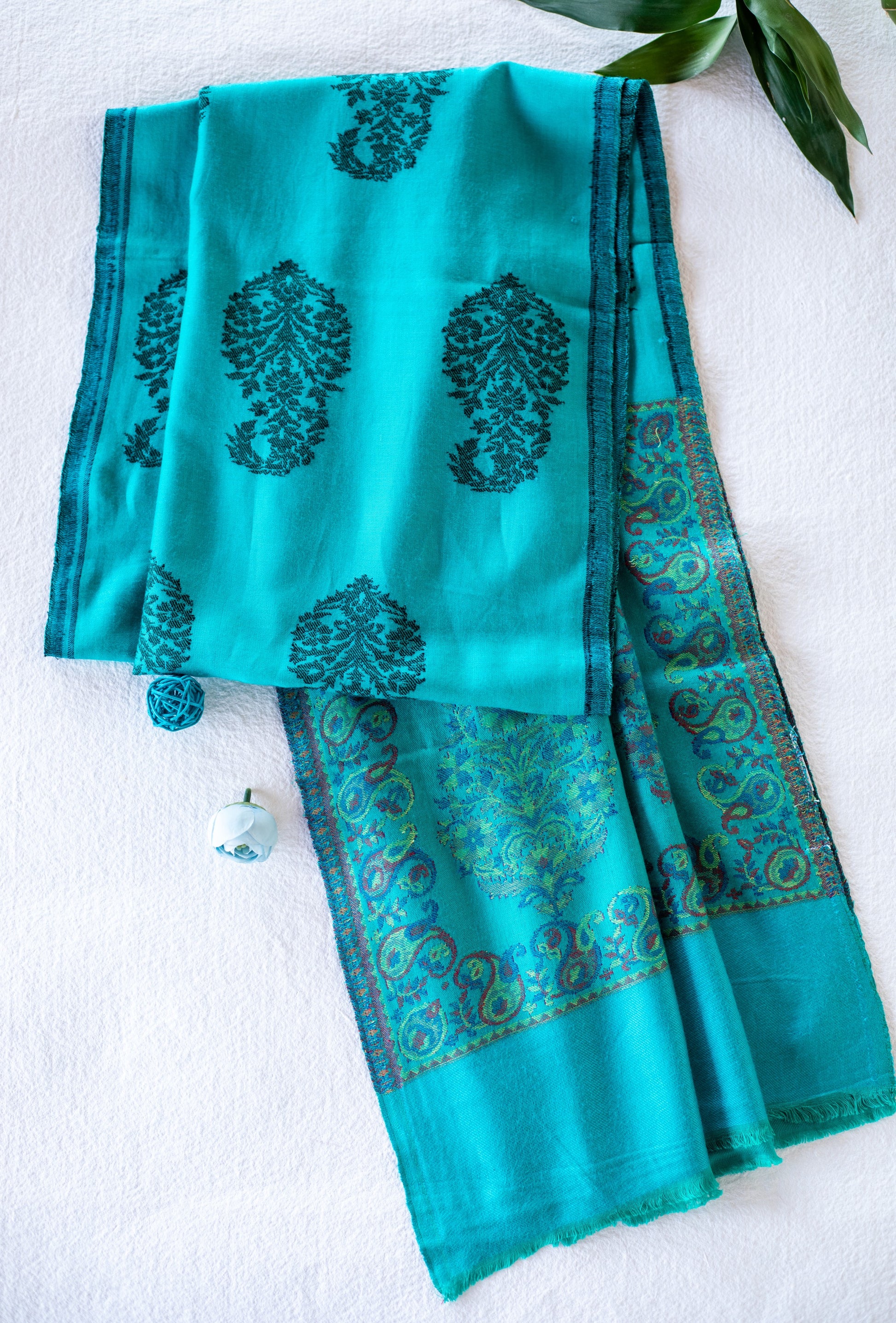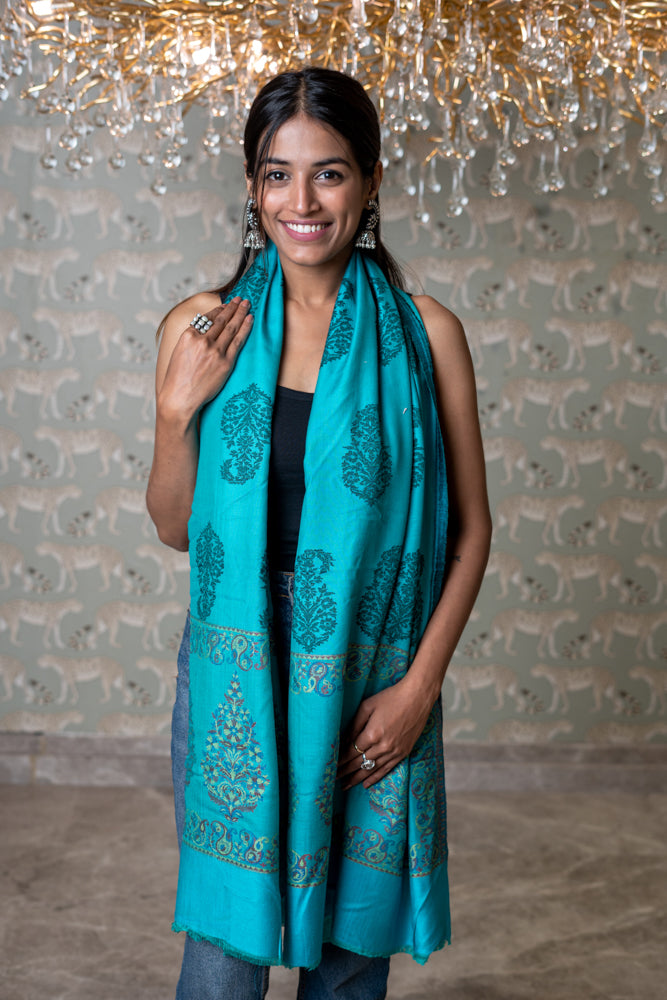 OMVAI Ornamental Buta Modal StoleTurquouse