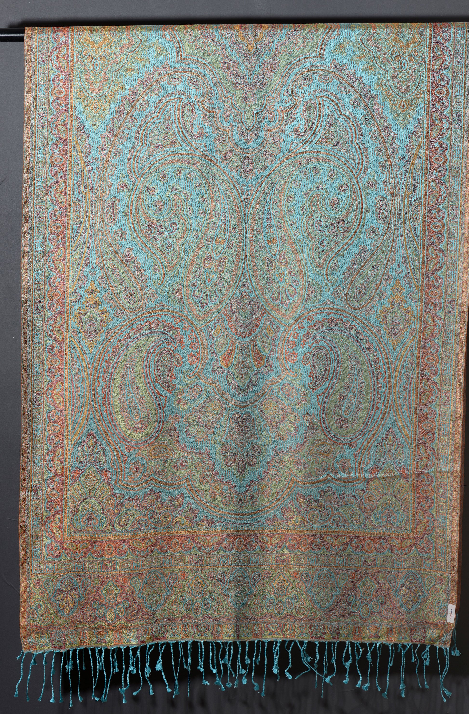 OMVAI Ornamental Paisley Premium Woven Silk Stole - Aqua Blue