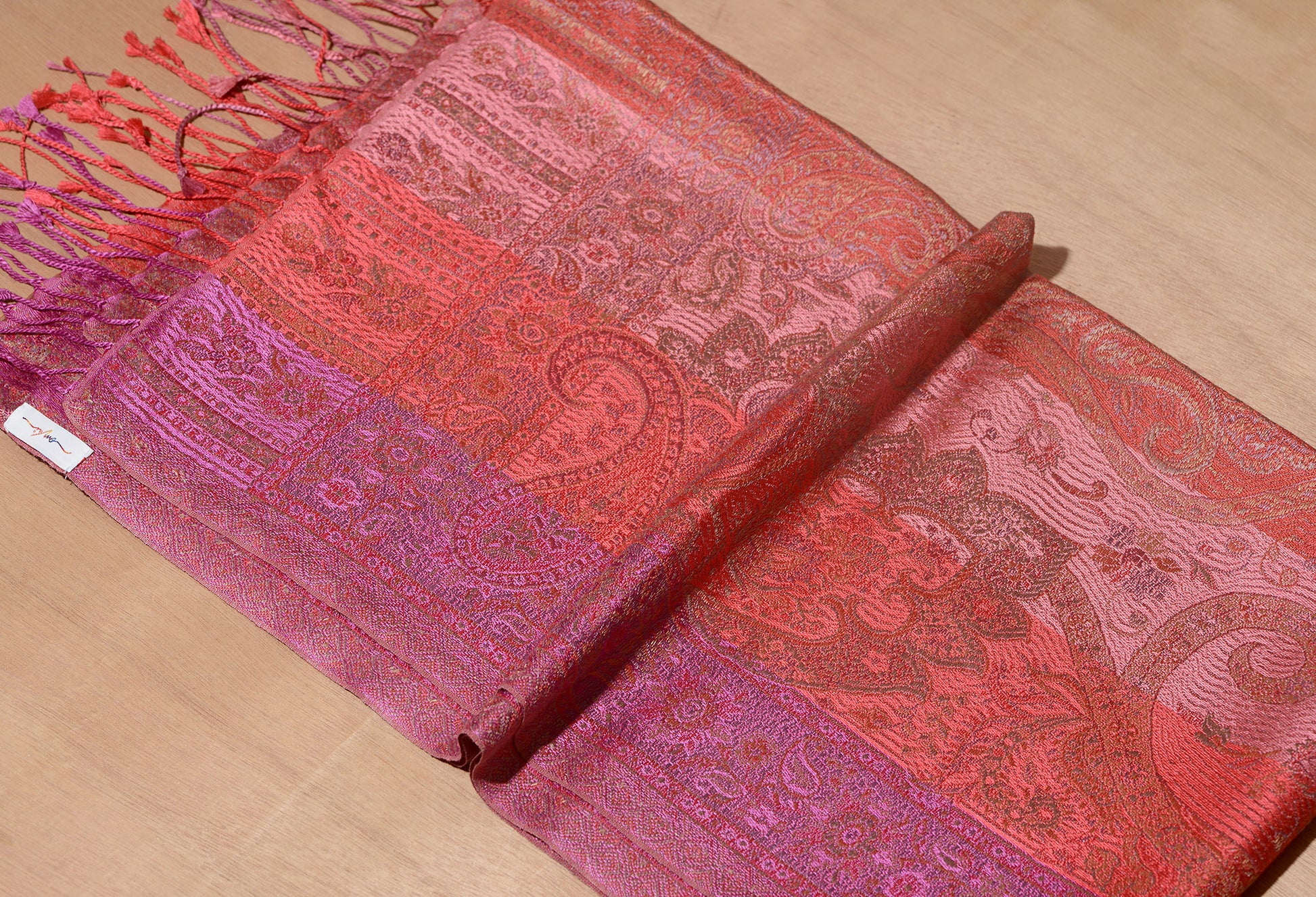 OMVAI Ornamental Paisley Premium Woven Silk Stole - Fruit Punch