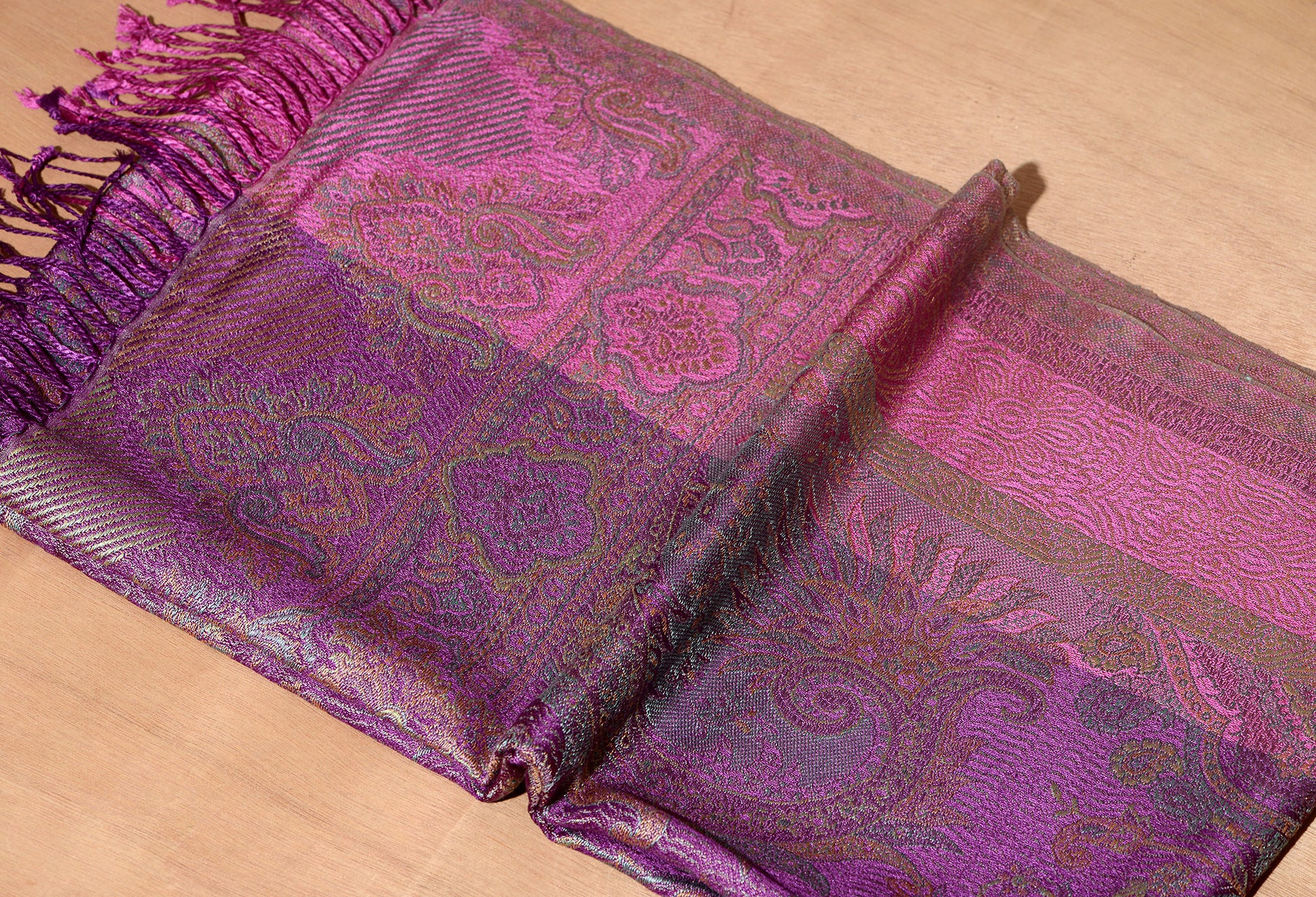 Indulge in the luxurious softness and radiant sheen of this exquisite woven silk stole.