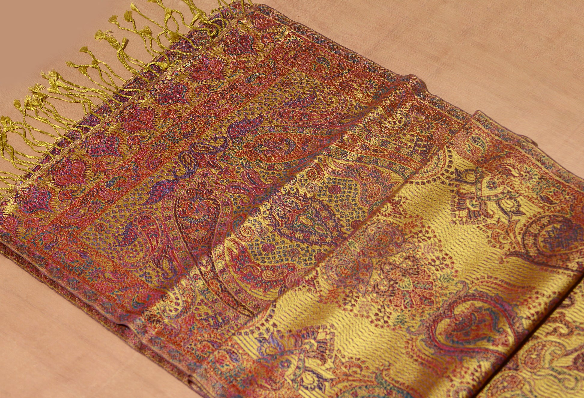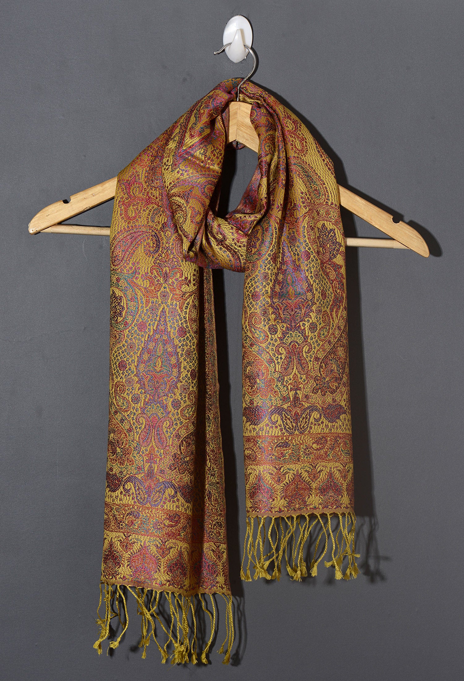 OMVAI Ornamental Paisley Premium Woven Silk Stole - Ochre Yellow