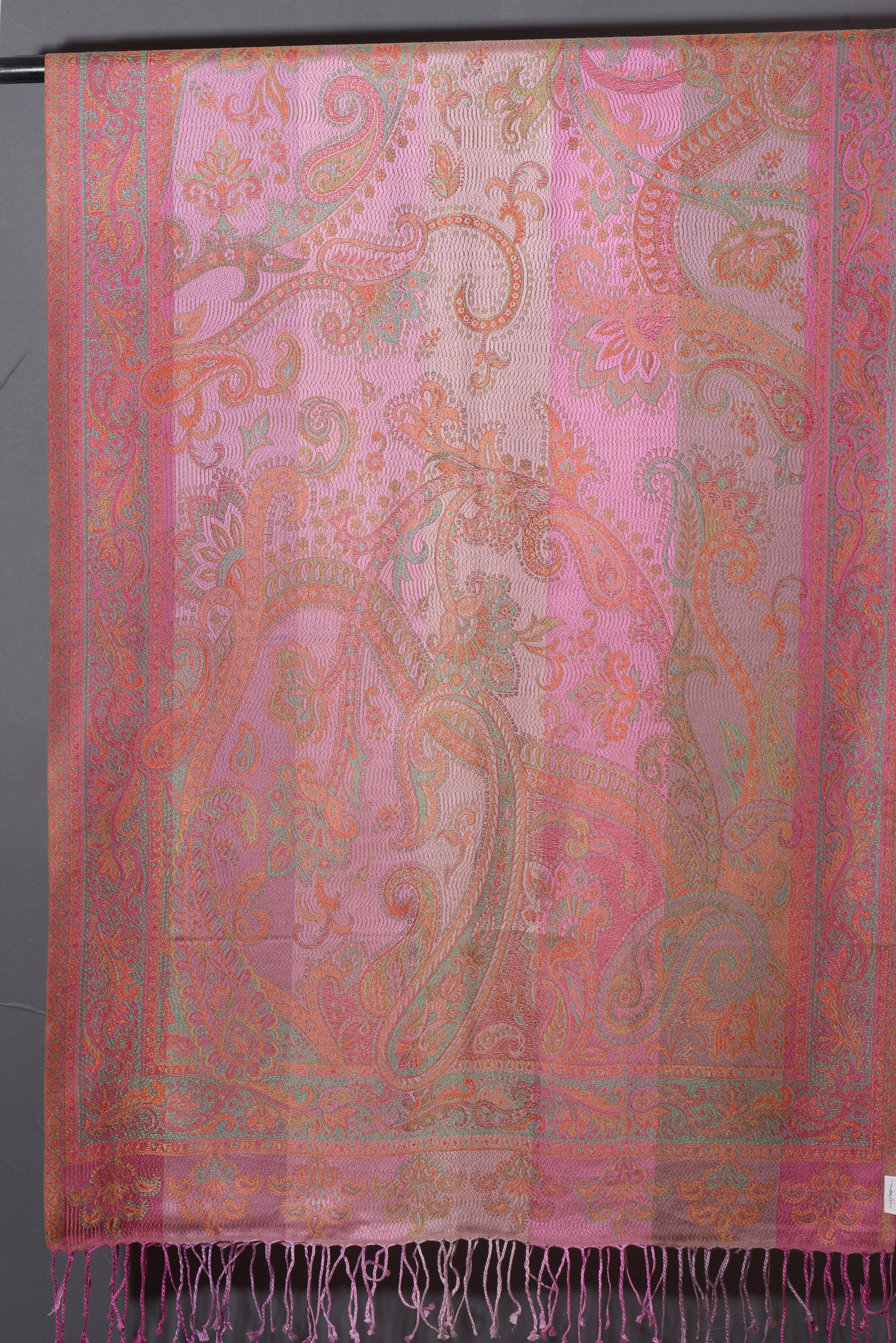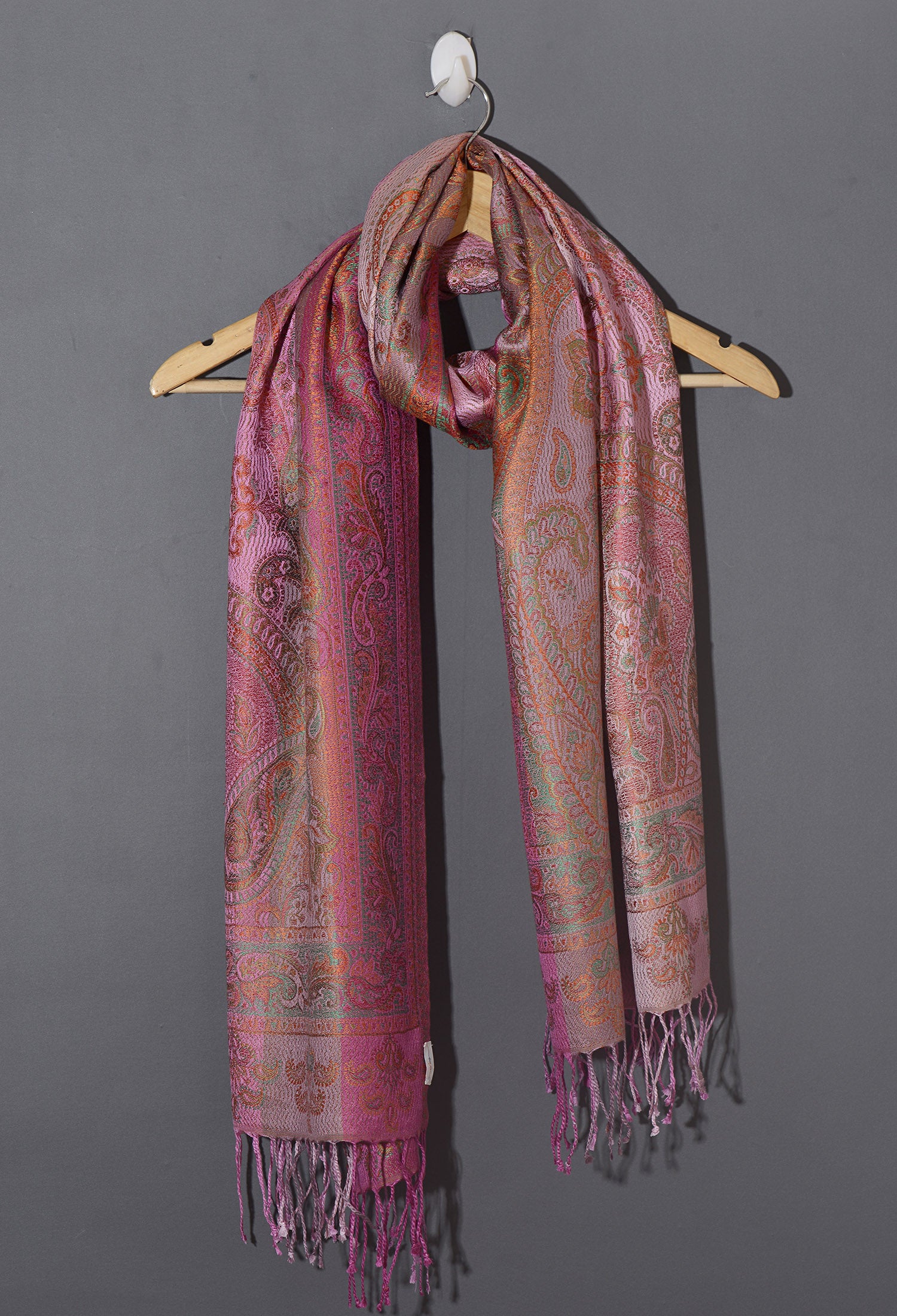 OMVAI Ornamental Paisley Premium Woven Silk Stole - Pink Sprinklers