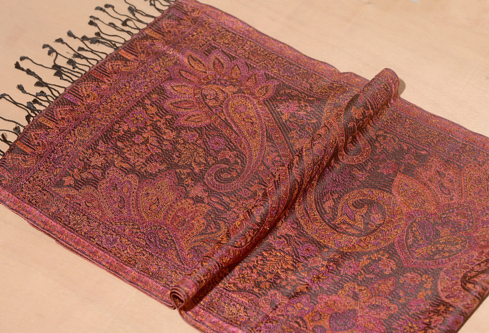 Indulge in the luxurious softness and radiant sheen of this exquisite woven silk stole.