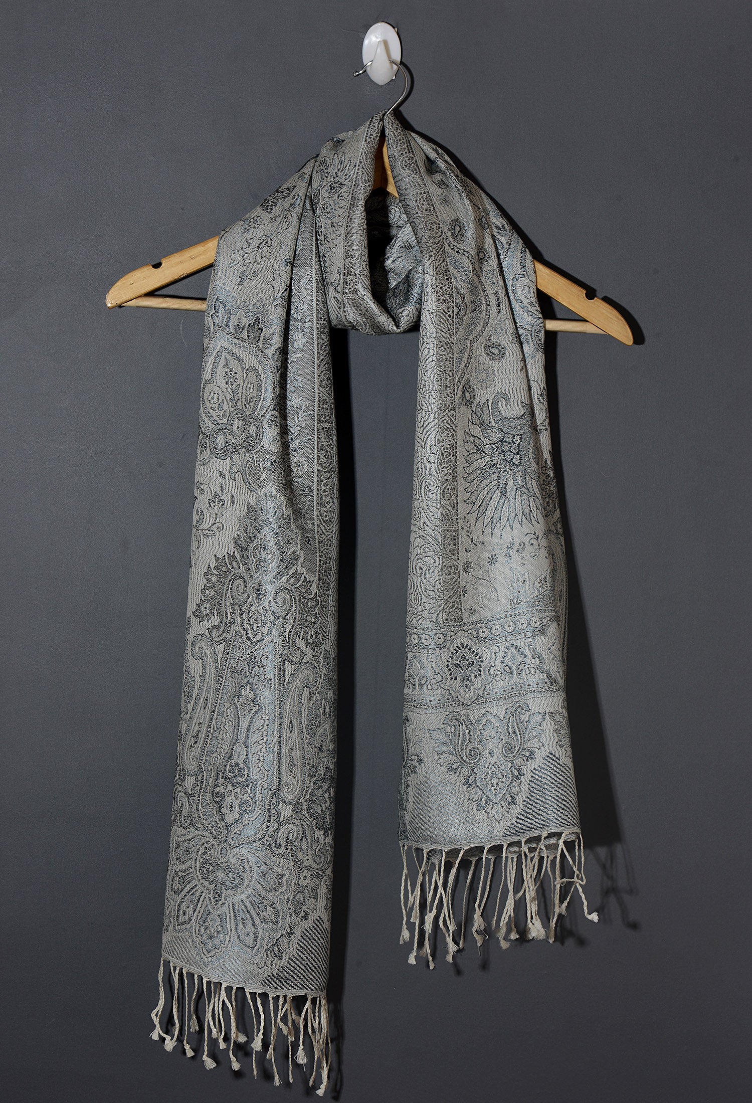 OMVAI Ornamental Paisley Premium Woven Silk Stole - Silver Charcoal