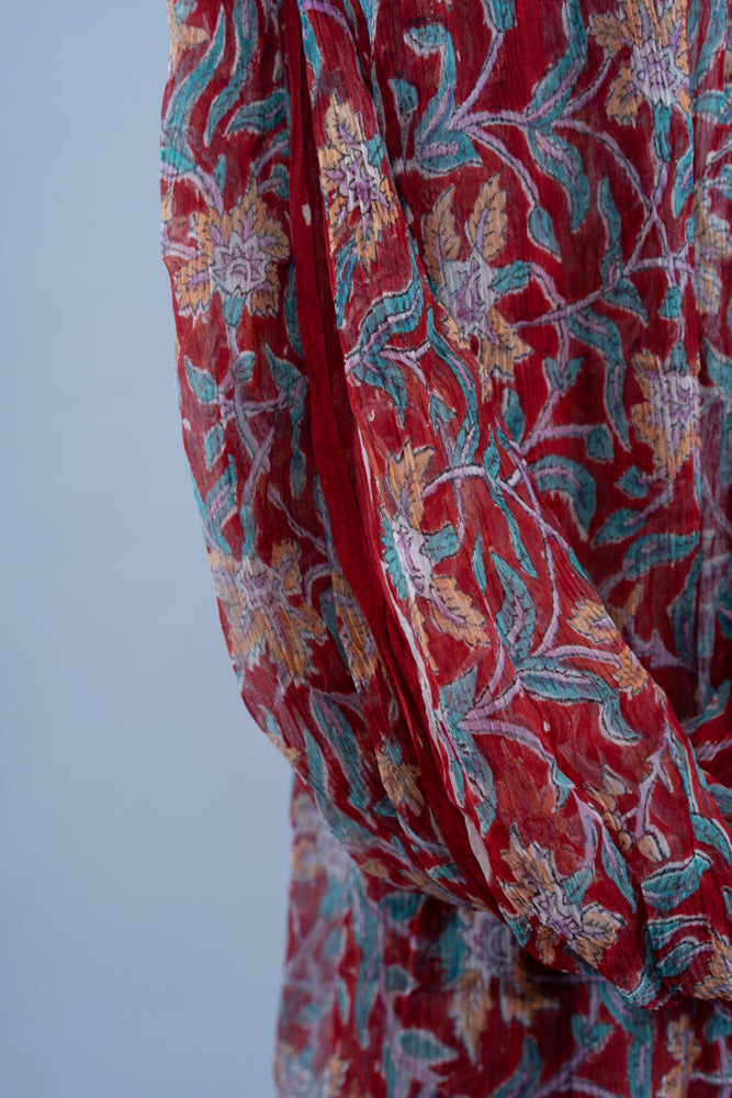 This floral chiffon dupatta is made with the finest quality and is hand block printed. With a bright red color base and multi colored bright floral print, it looks beautiful on your shoulders while you go out. The dupatta can be worn with jeans, a suit or a casual outfit. With this kind of quality and design, you will have a good time at any occasion.