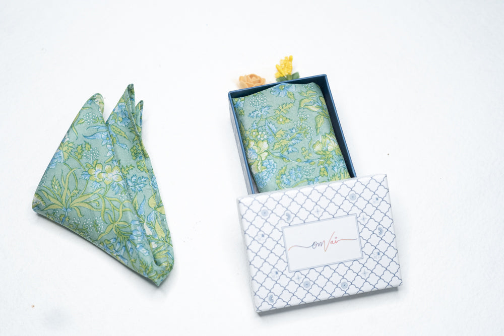 OMVAI Silk Pocket Square Pastel Florets Sky