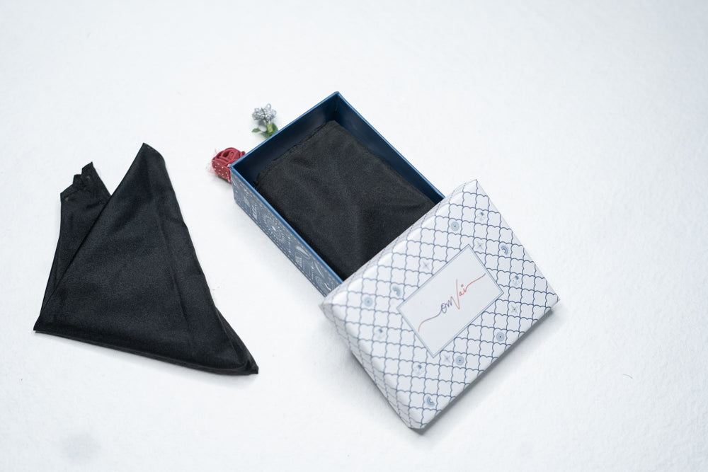 OMVAI Solid Silk Pocket Square Midnight Black