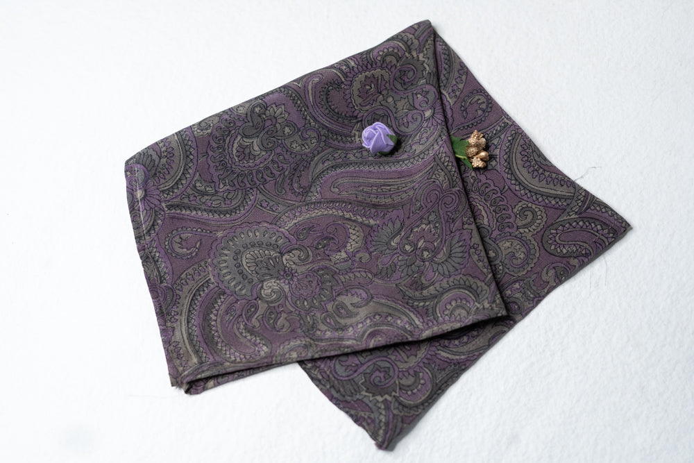 OMVAI Silk Pocket Square Ornamental Paisley in Purple