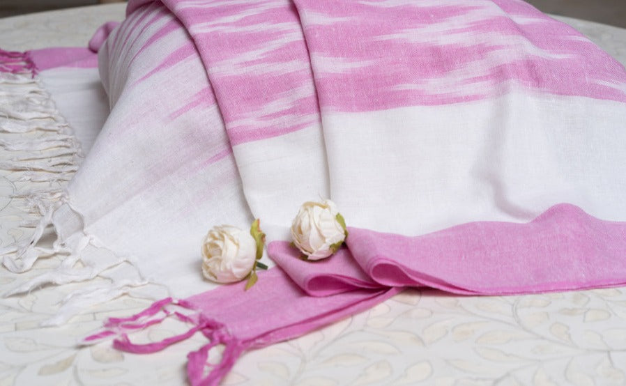 OMVAI The IKAT Dupatta with Tassels - Mischief Pink