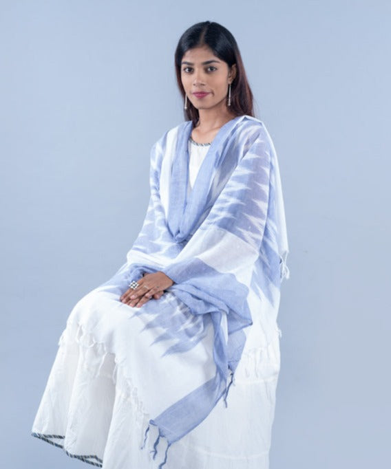 OMVAI brings to you a beautiful ethnic range in the IKAT hand crafted dupattas. OMVAI IKAT Dupatta with tassels is a hand woven range of wraps which can be used with ethnic and western dresses too, Available in many colors, this is a beautiful wrap to add grace and elegance to the person adorning it. Made in Pure cotton, light weight and breathable, this dupatta is a perfect add on to the stylish you.