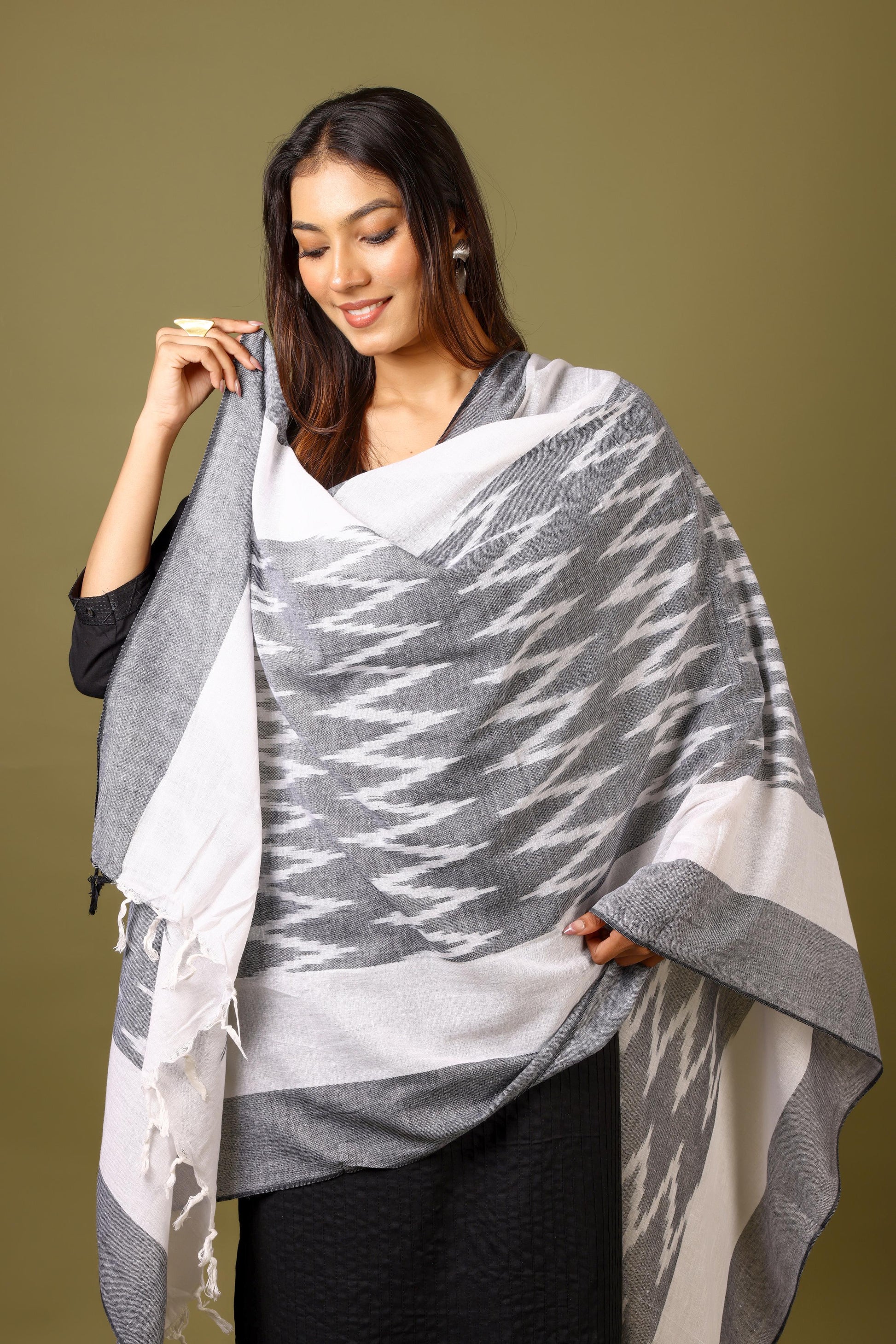 OMVAI brings to you a beautiful ethnic range in the IKAT hand crafted dupattas. OMVAI IKAT Dupatta with tassels is a hand woven range of wraps which can be used with ethnic and western dresses too,