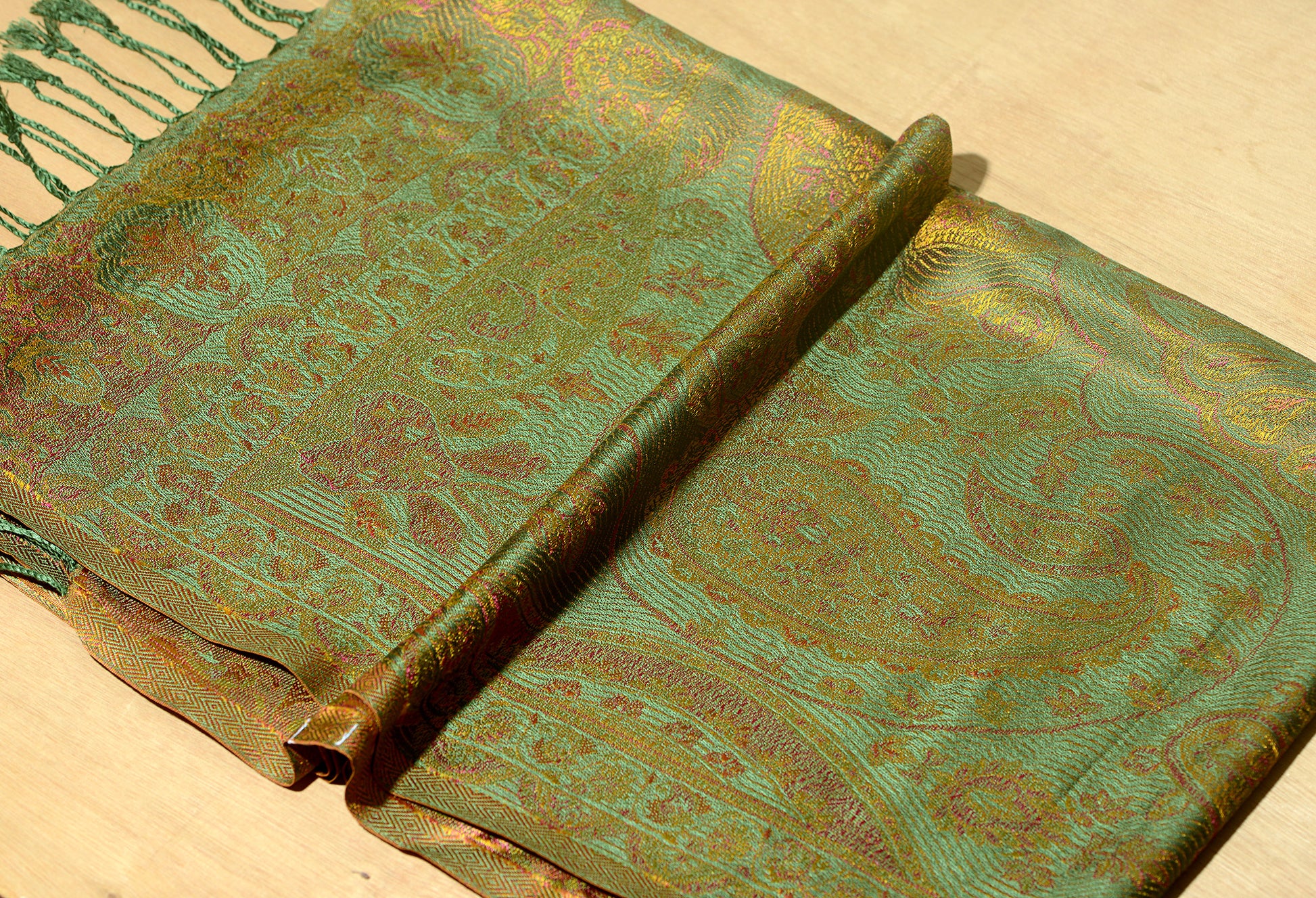 OMVAI Victorian Paisley Pattern Micro Art Silk Stole - Old Gold Green