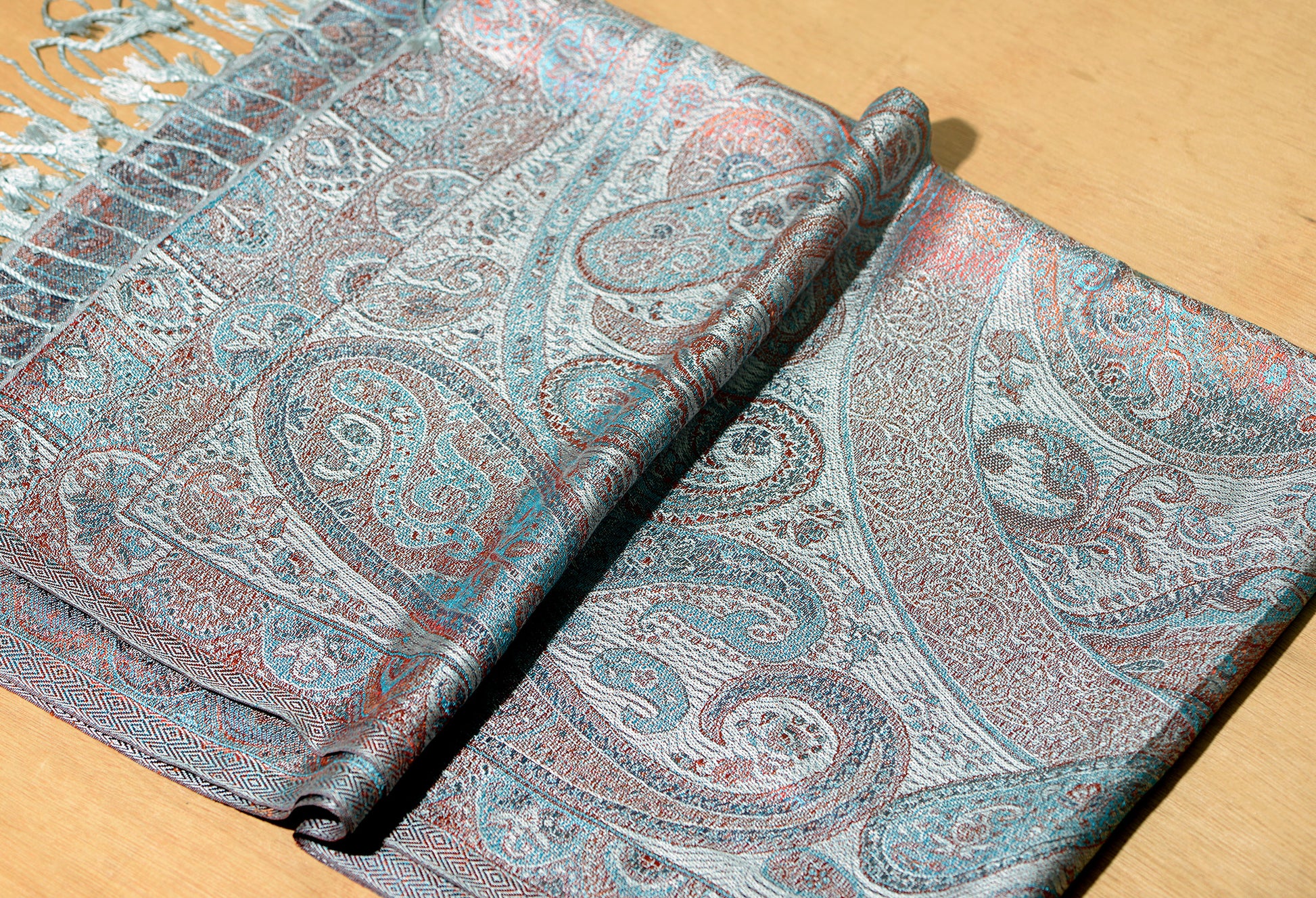OMVAI Victorian Paisley Pattern Micro Art Silk Stole - Mystic Grey