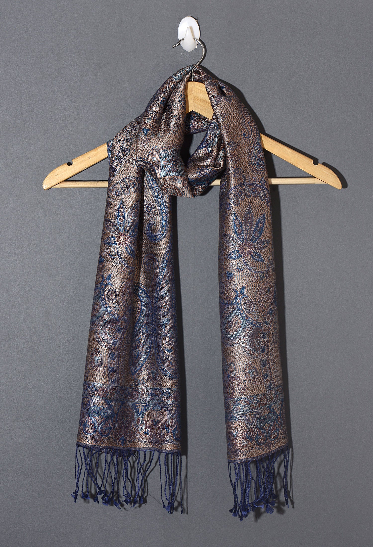 OMVAI Victorian Paisley Premium Woven Silk Stole - Copper Blue