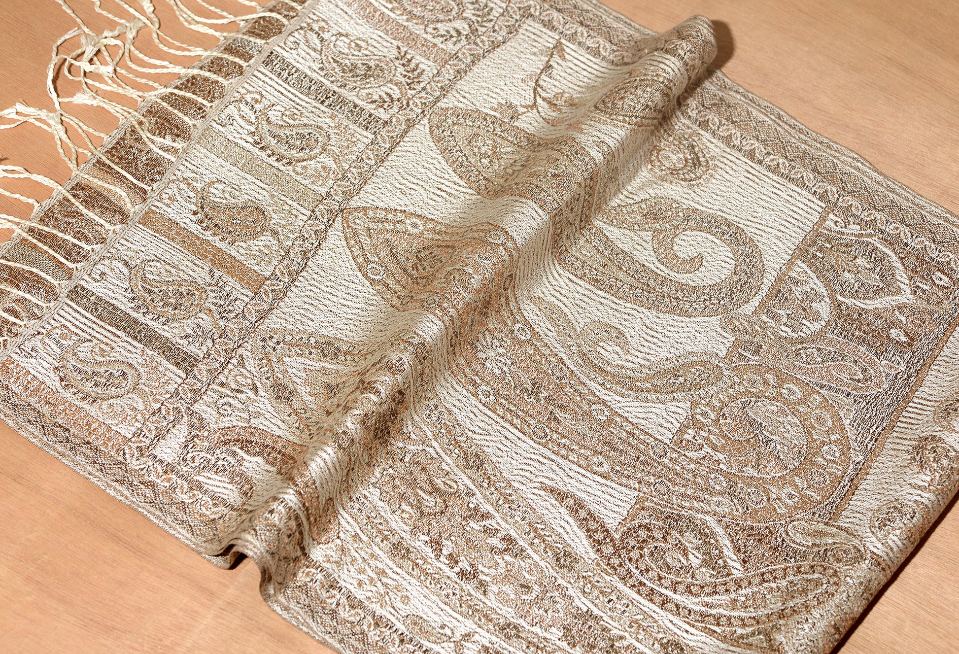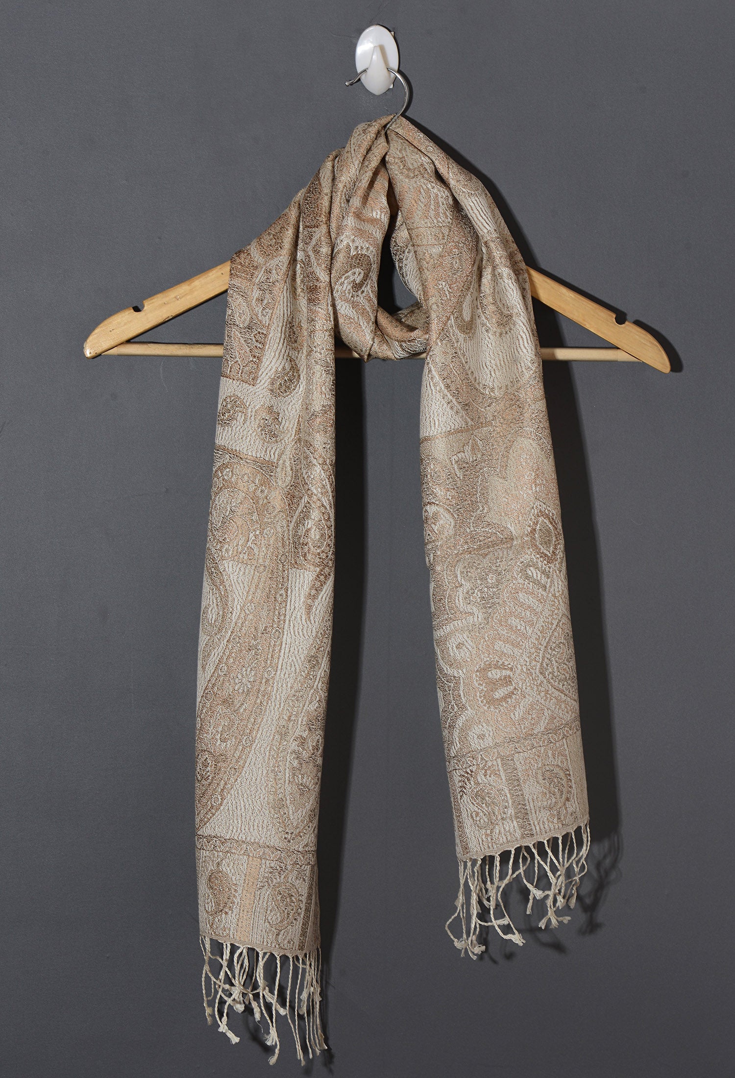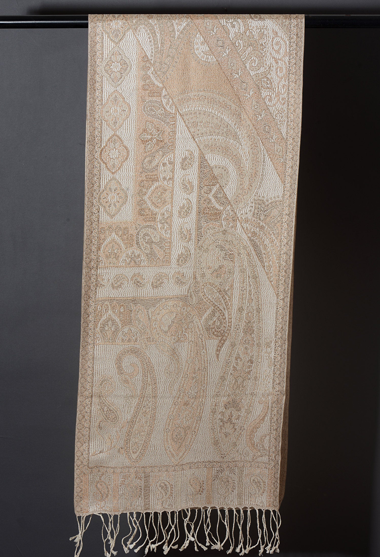 OMVAI Victorian Paisley Premium Woven Silk Stole - Nude Gold