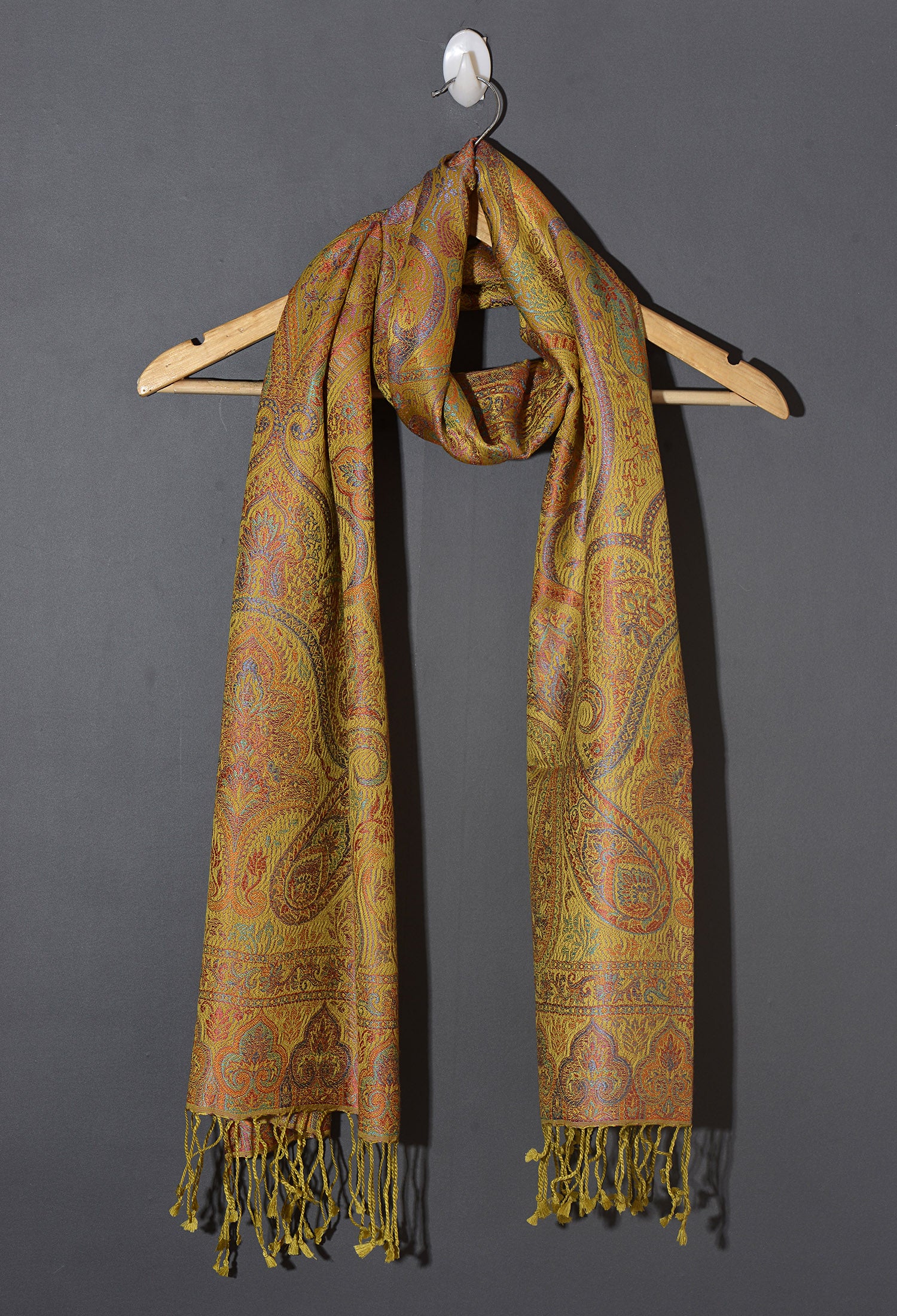 OMVAI Ornamental Paisley Premium Woven Silk Stole - Pastel Yellow