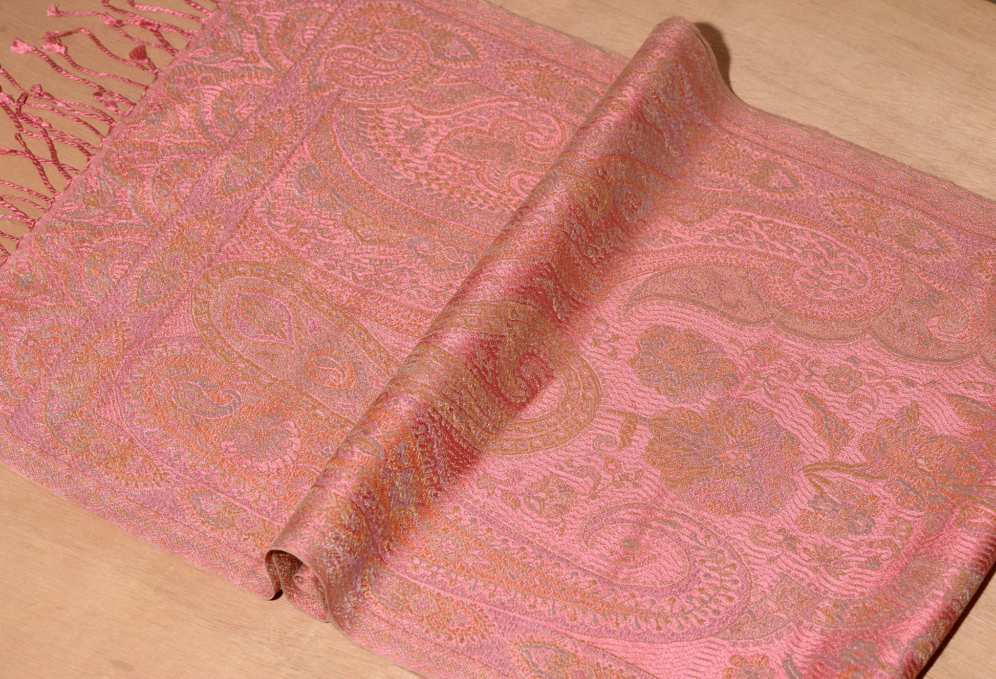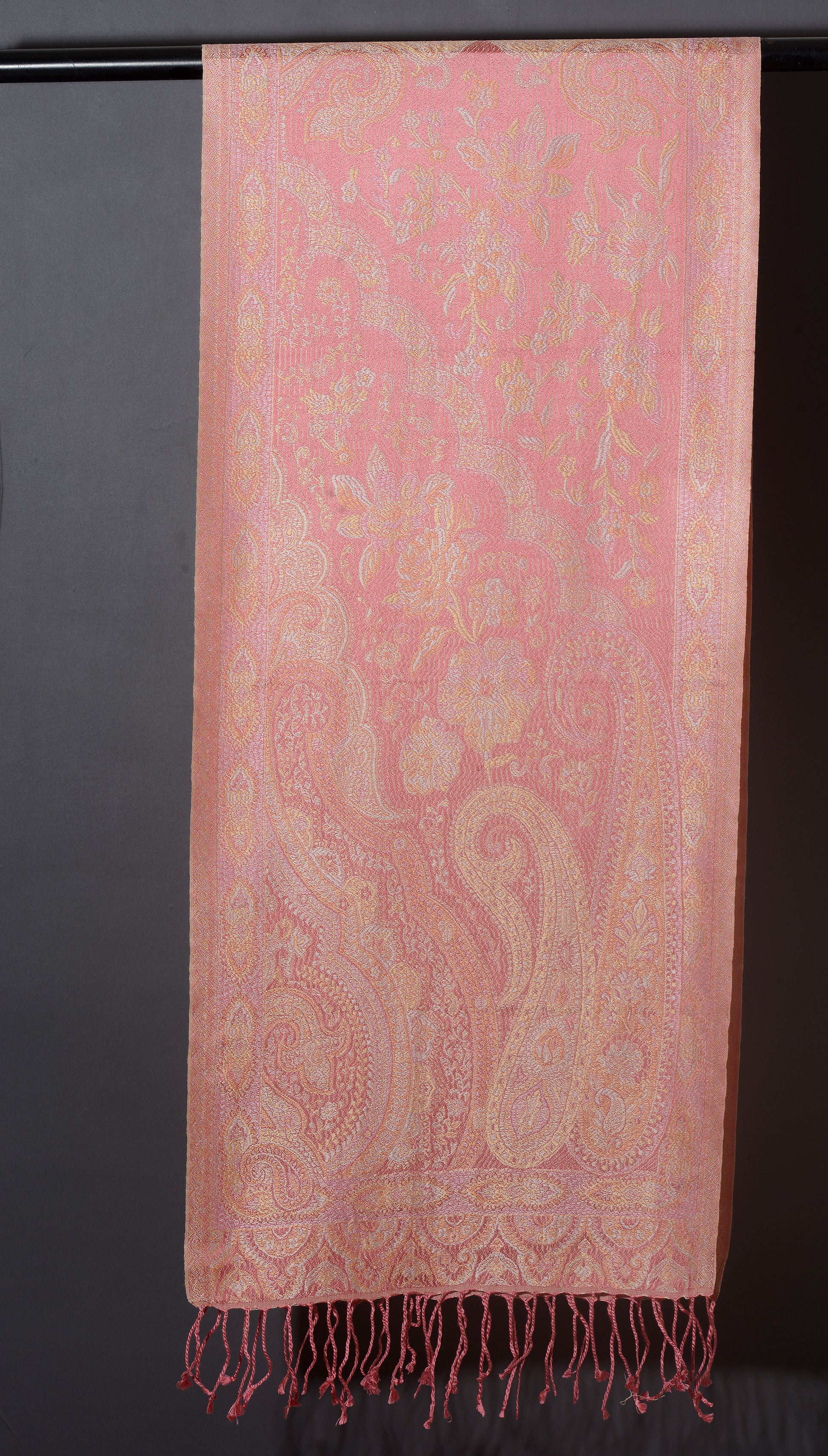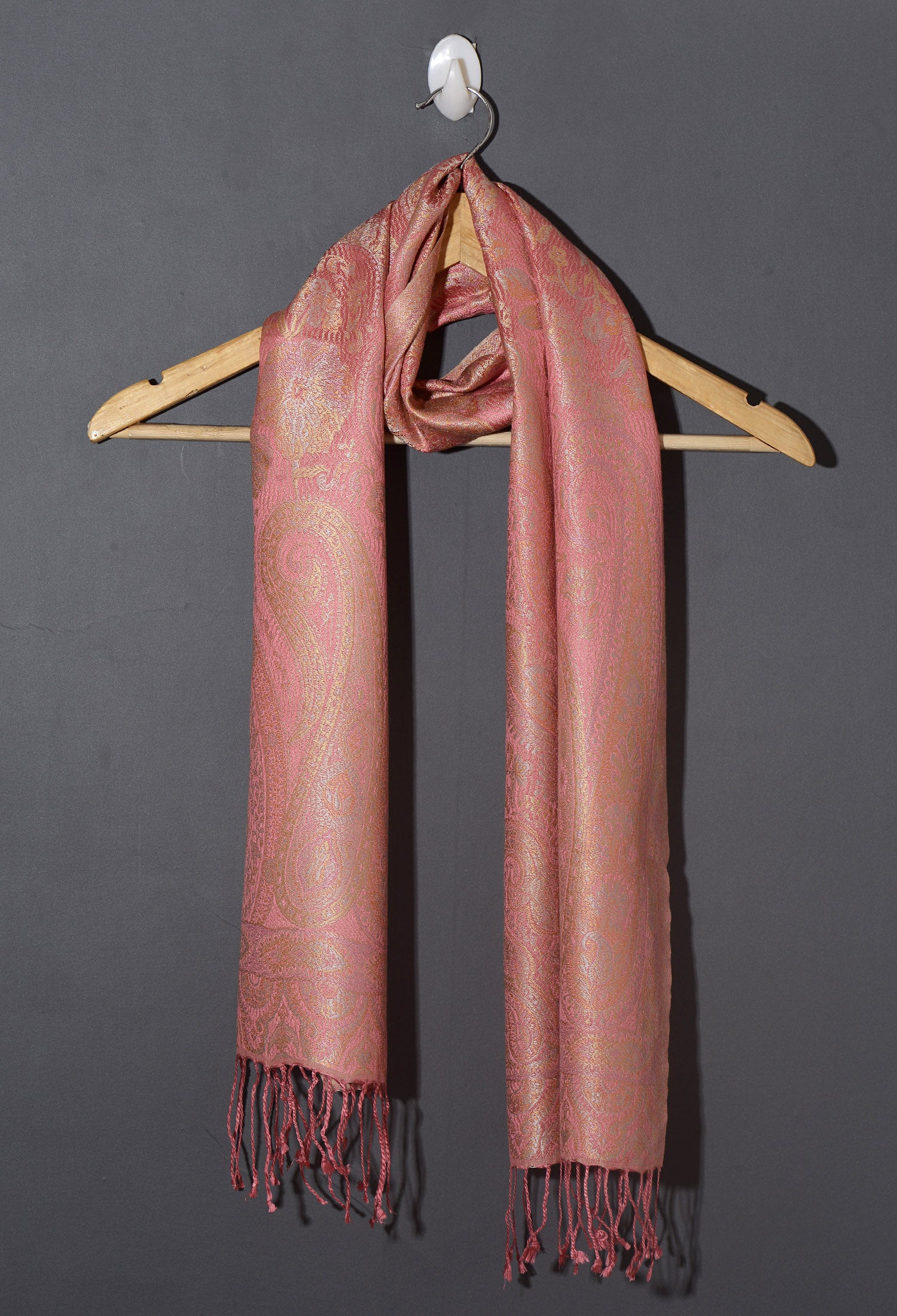 OMVAI Victorian Paisley Premium Woven Silk Stole - Peachy Pink