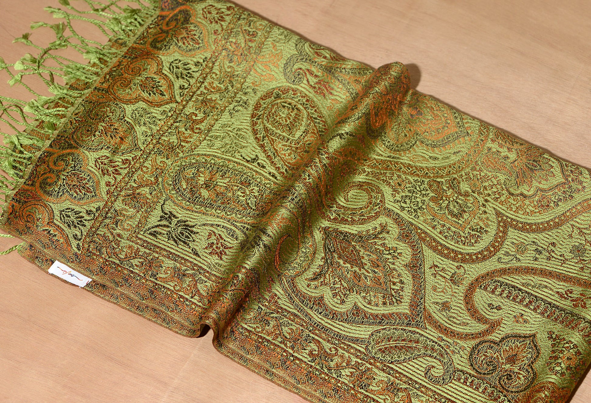 OMVAI Victorian Paisley Premium Woven Silk Stole - Yellow Iris