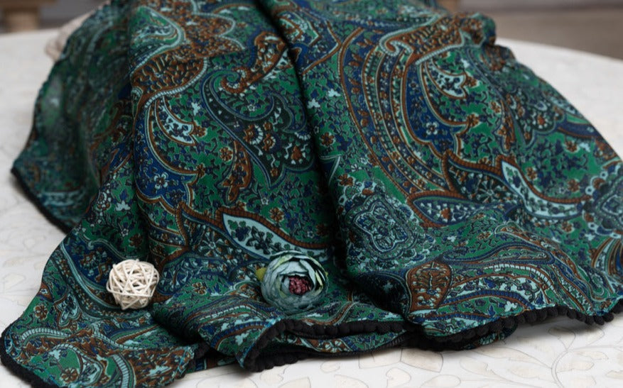OMVAI Vintage Paisley Beauty Chiffon Stole - Green