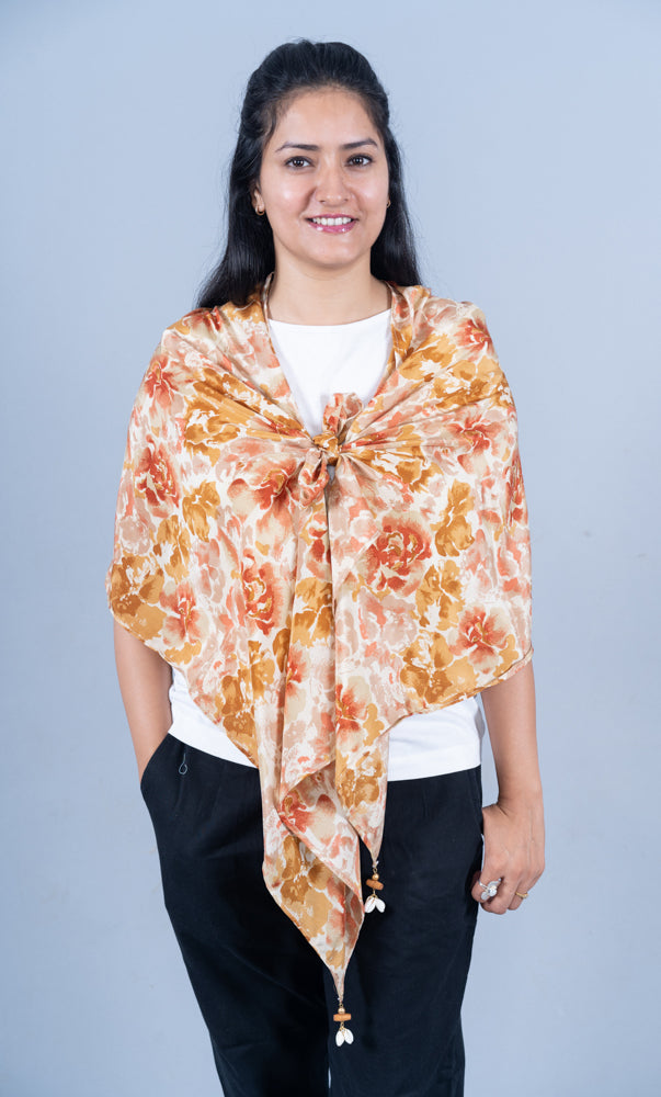 OMVAI Water color Rose Crepe Stole - Earthy Tones