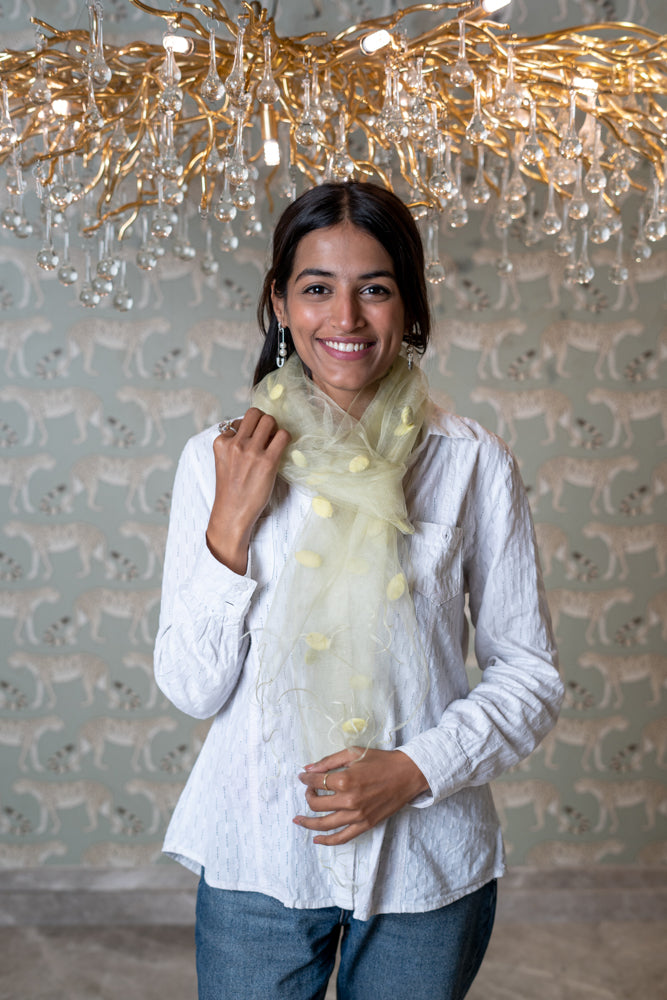 OMVAI Woven Spindles Silk Organza Stole - Buttercup Yellow