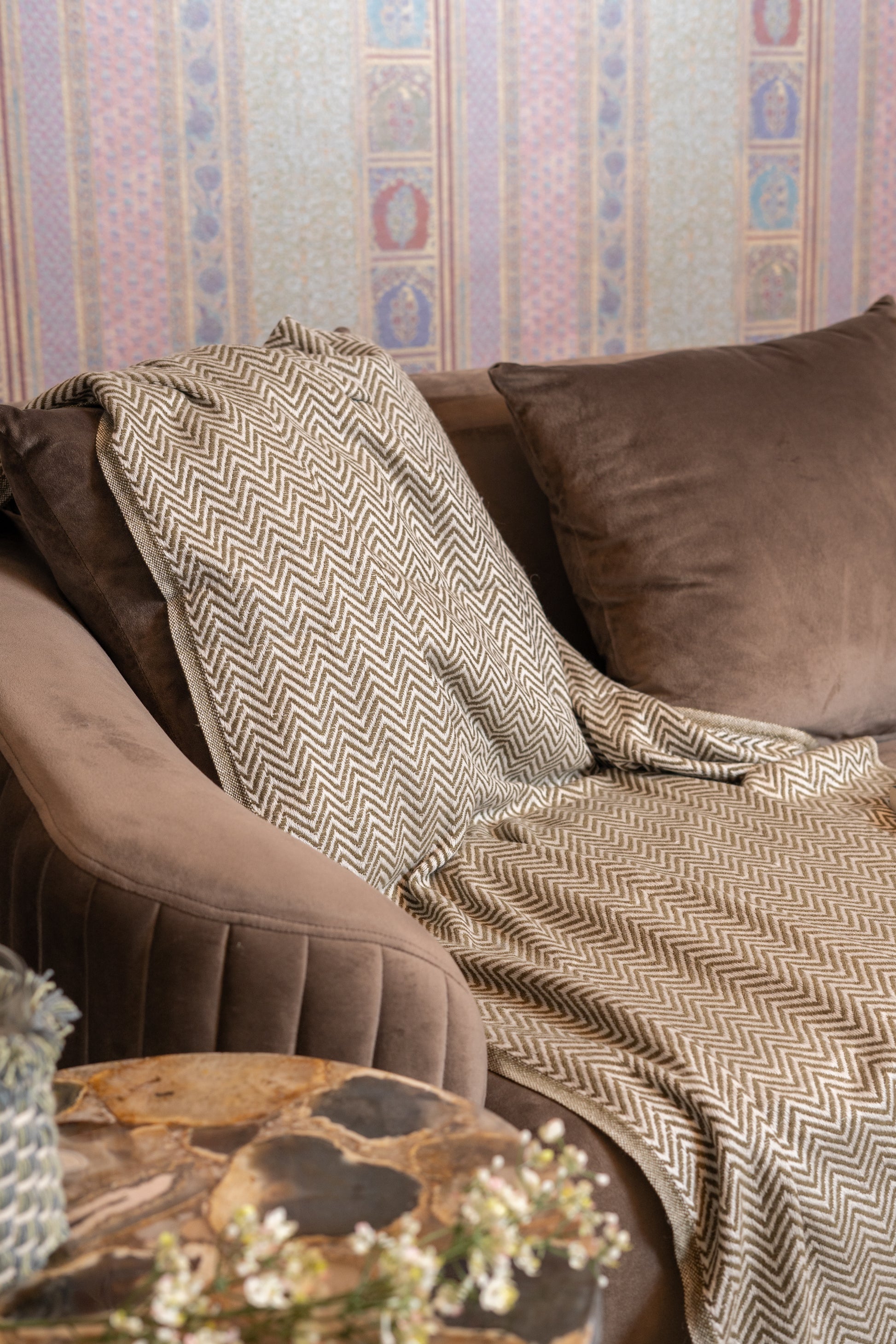 OMVAI Zig Zag Patterned Woven Throw Blanket / Comforter Olive Green