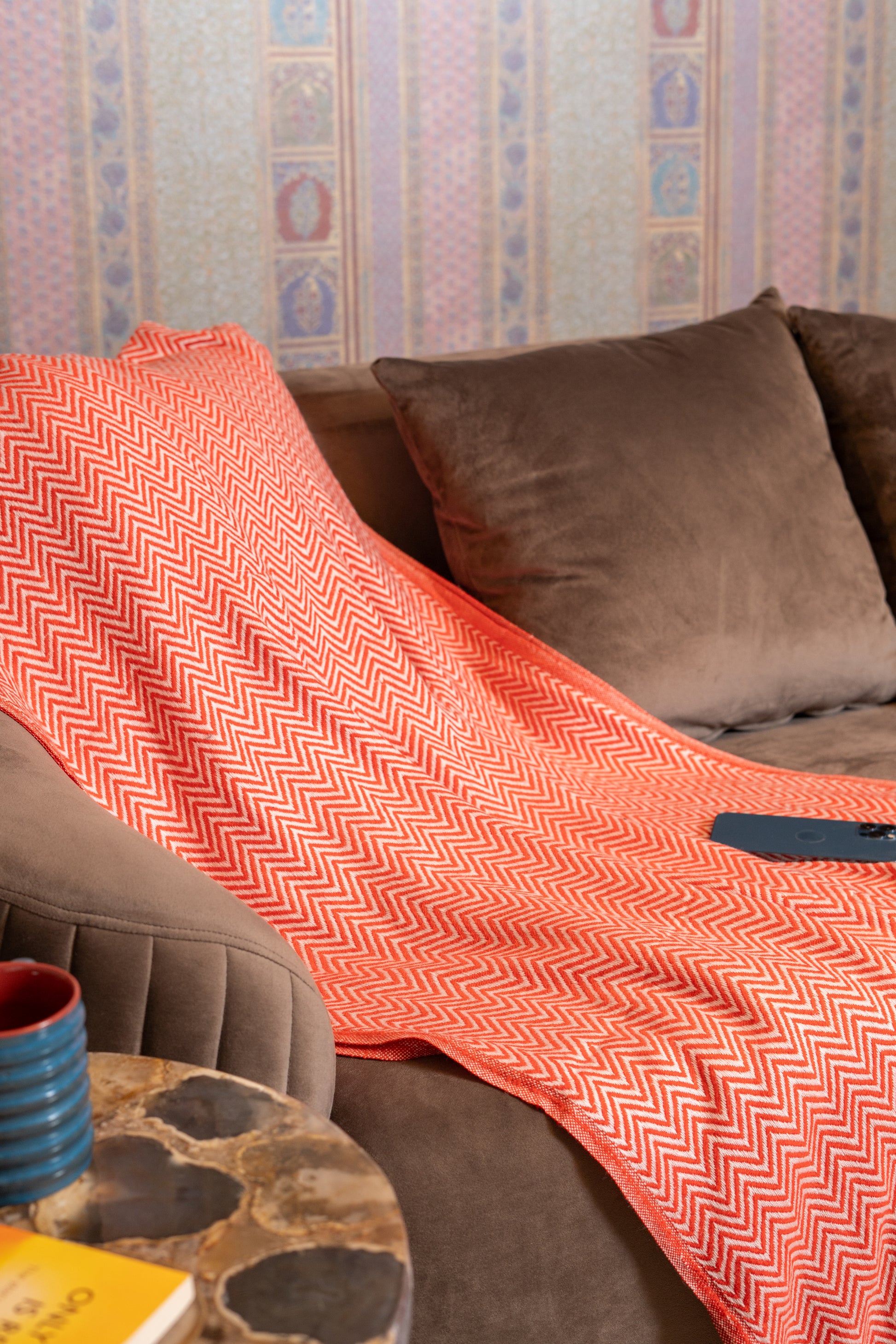 OMVAI Zig Zag Patterned Woven Throw Blanket / Comforter Orange