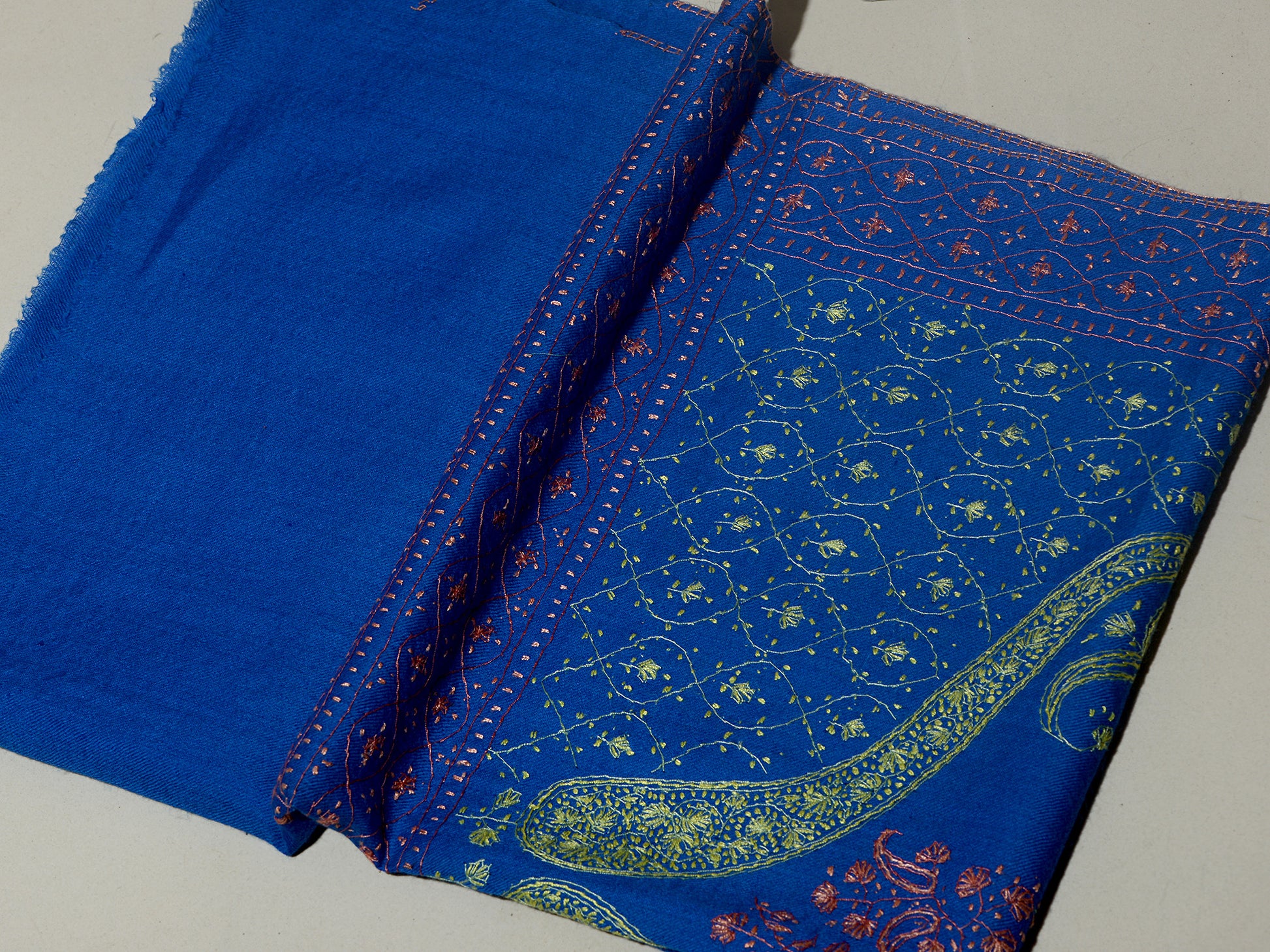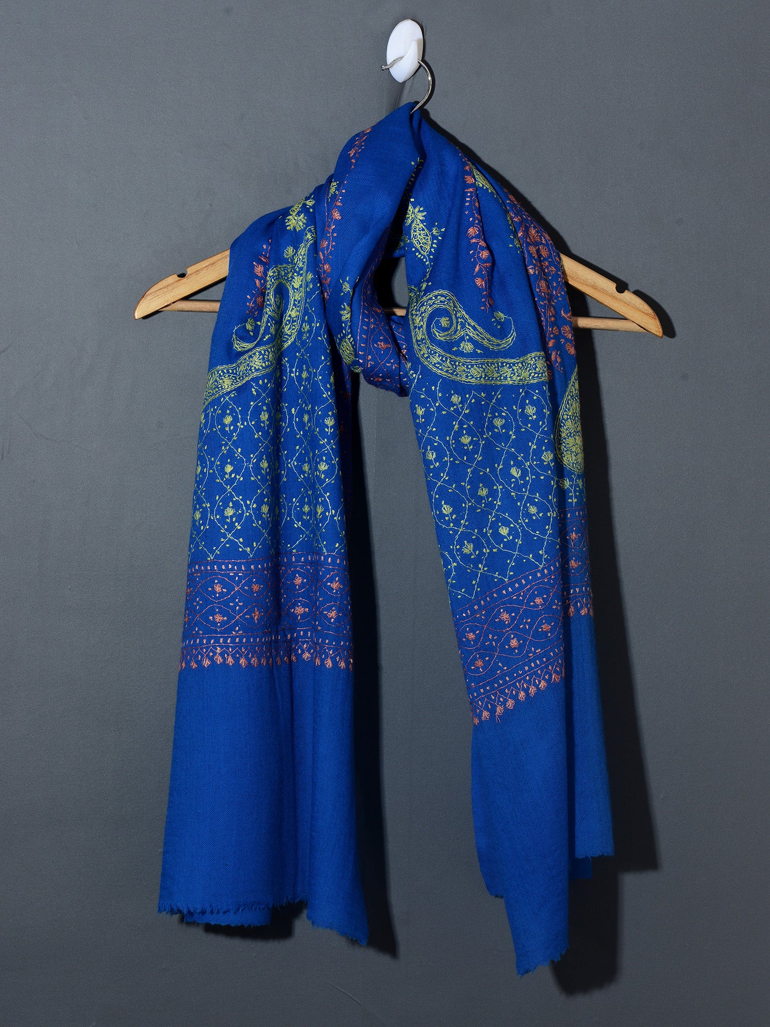 ORNAMENTAL PAISLEY The Magnificent Hand Embroidered Stole - Blissful Blue