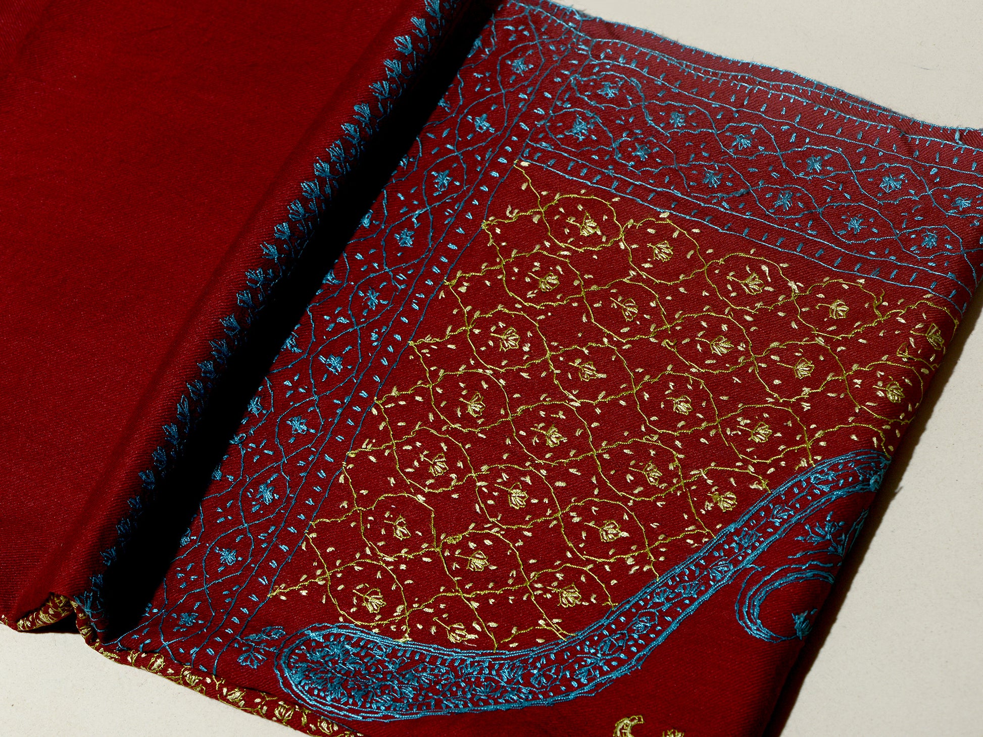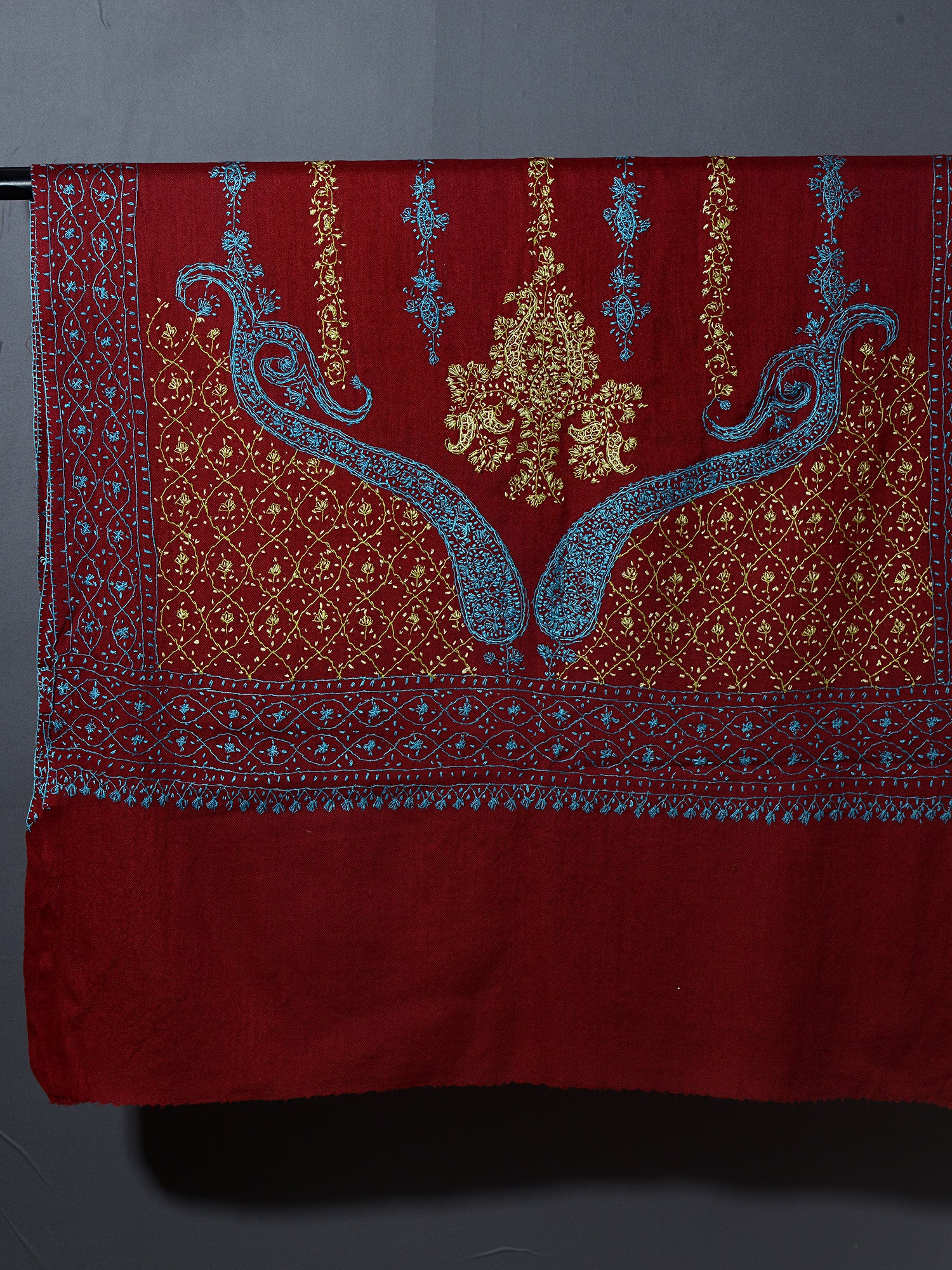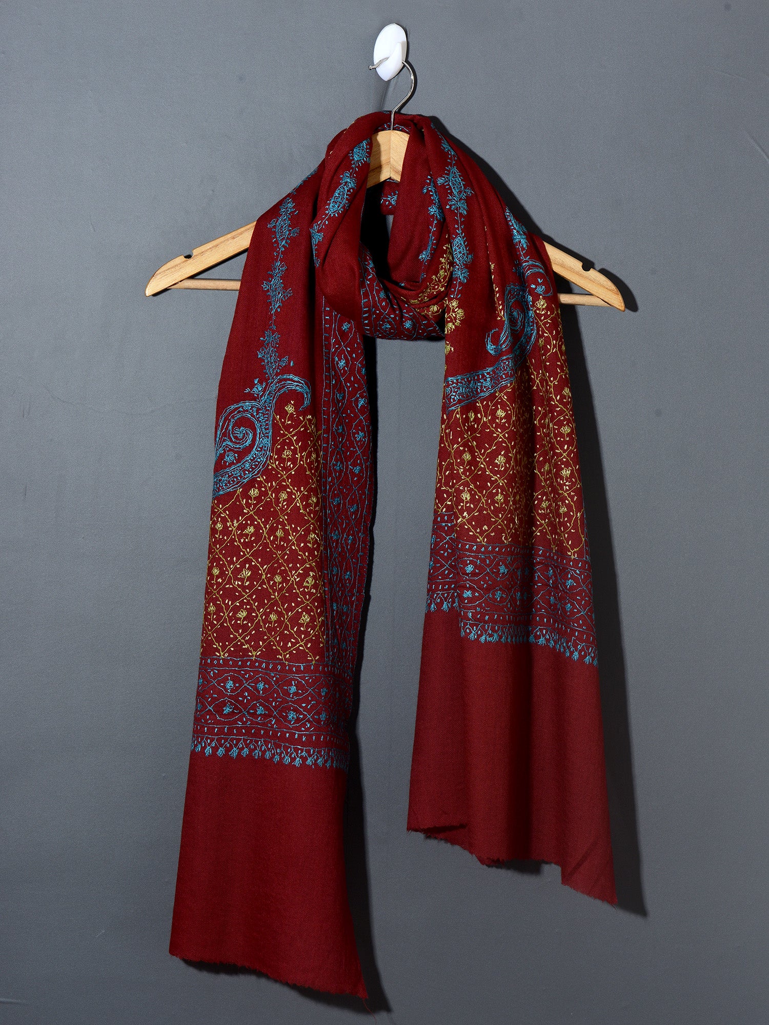 ORNAMENTAL PAISLEY The Magnificent Hand Embroidered Stole - Cherry Red