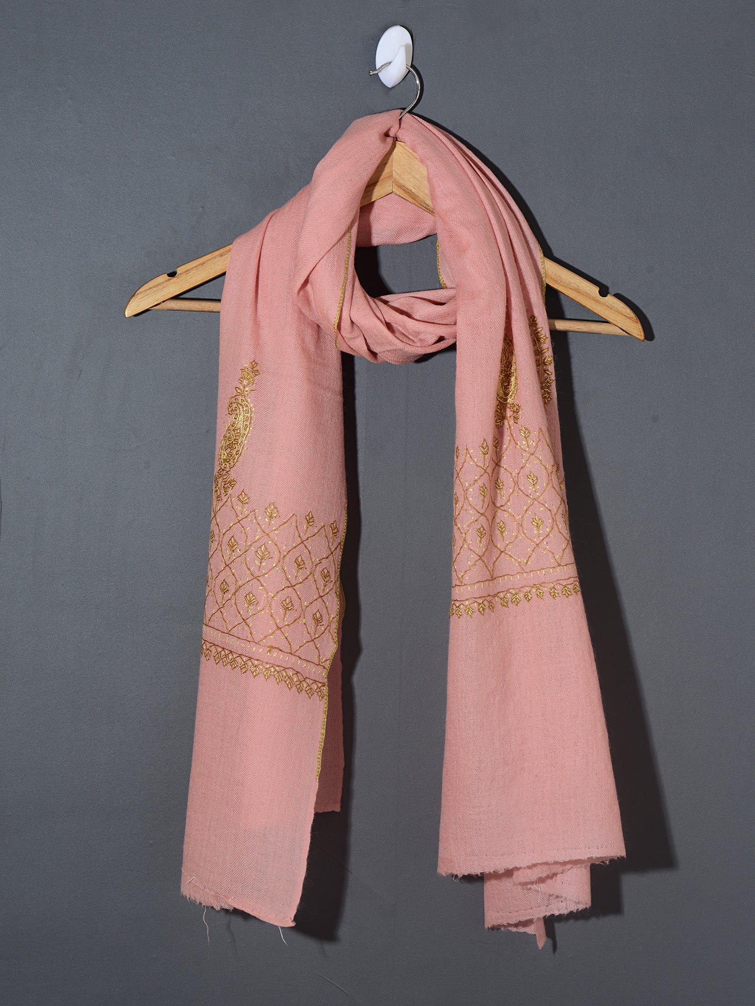 ORNAMENTAL PAISLEY The Magnificent Hand Embroidered Stole - Powder Pink