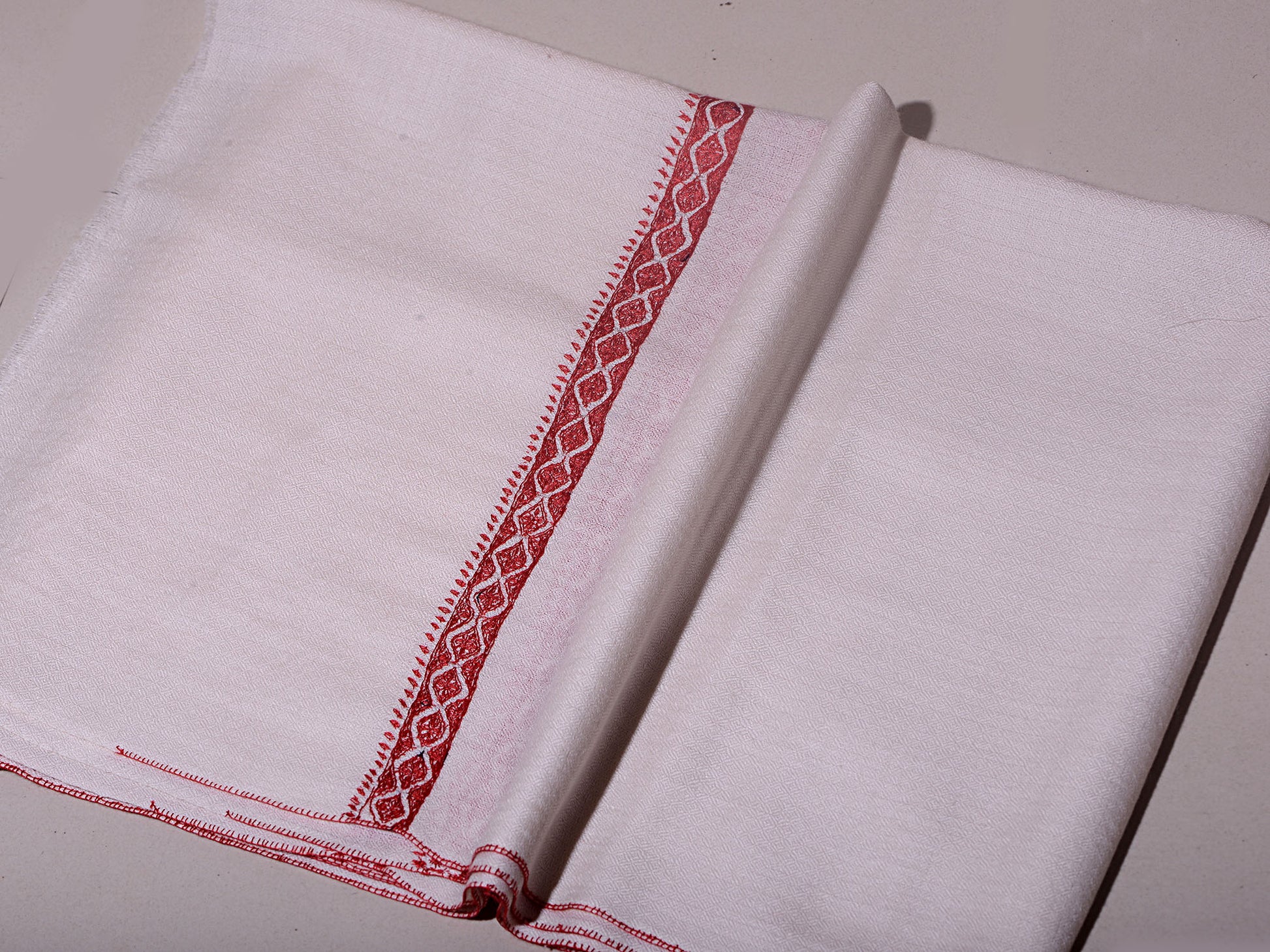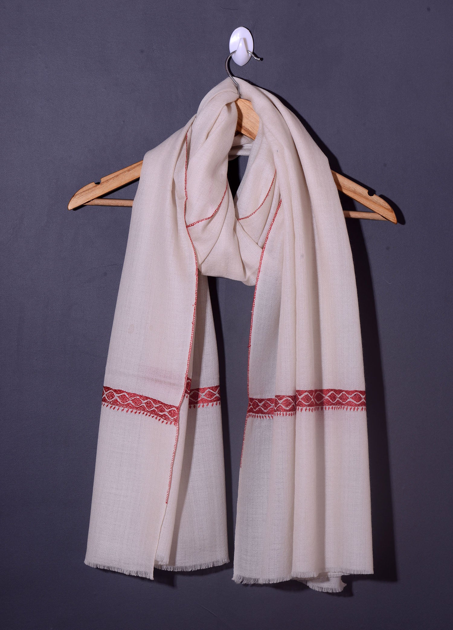 PALLA BORDER Gracious Hand Embroidered Stole - Pearl white Red