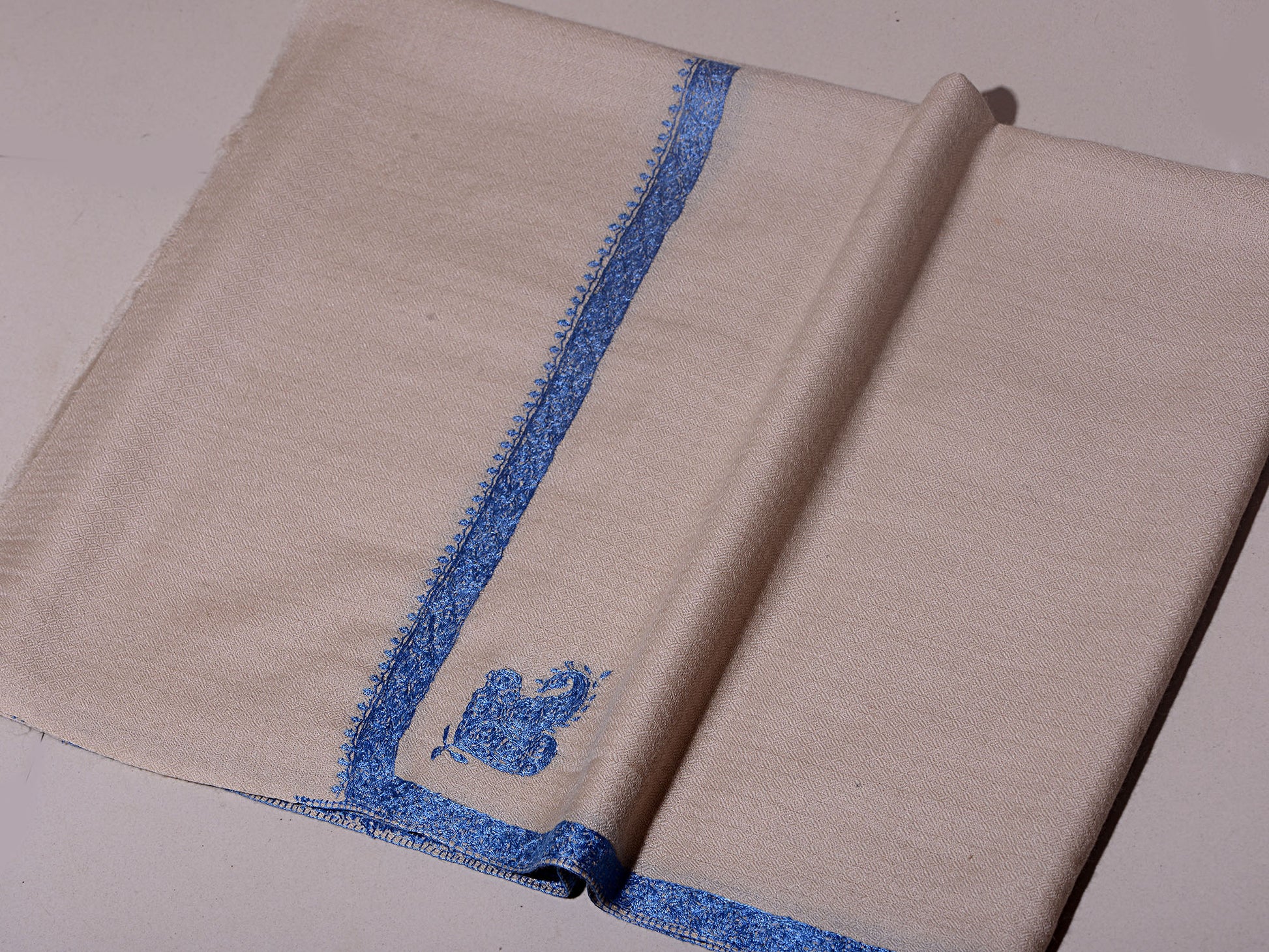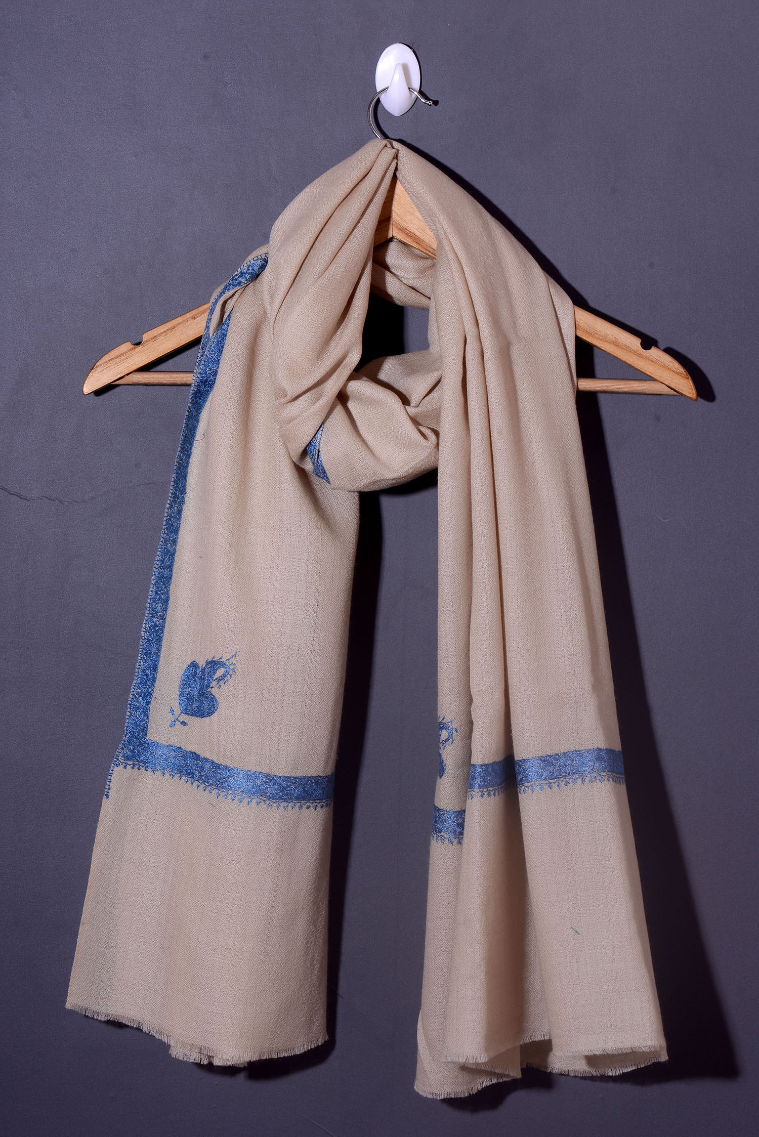 PALLA BUTI Magnificent Hand Embroidered Stole - Ivory Blue
