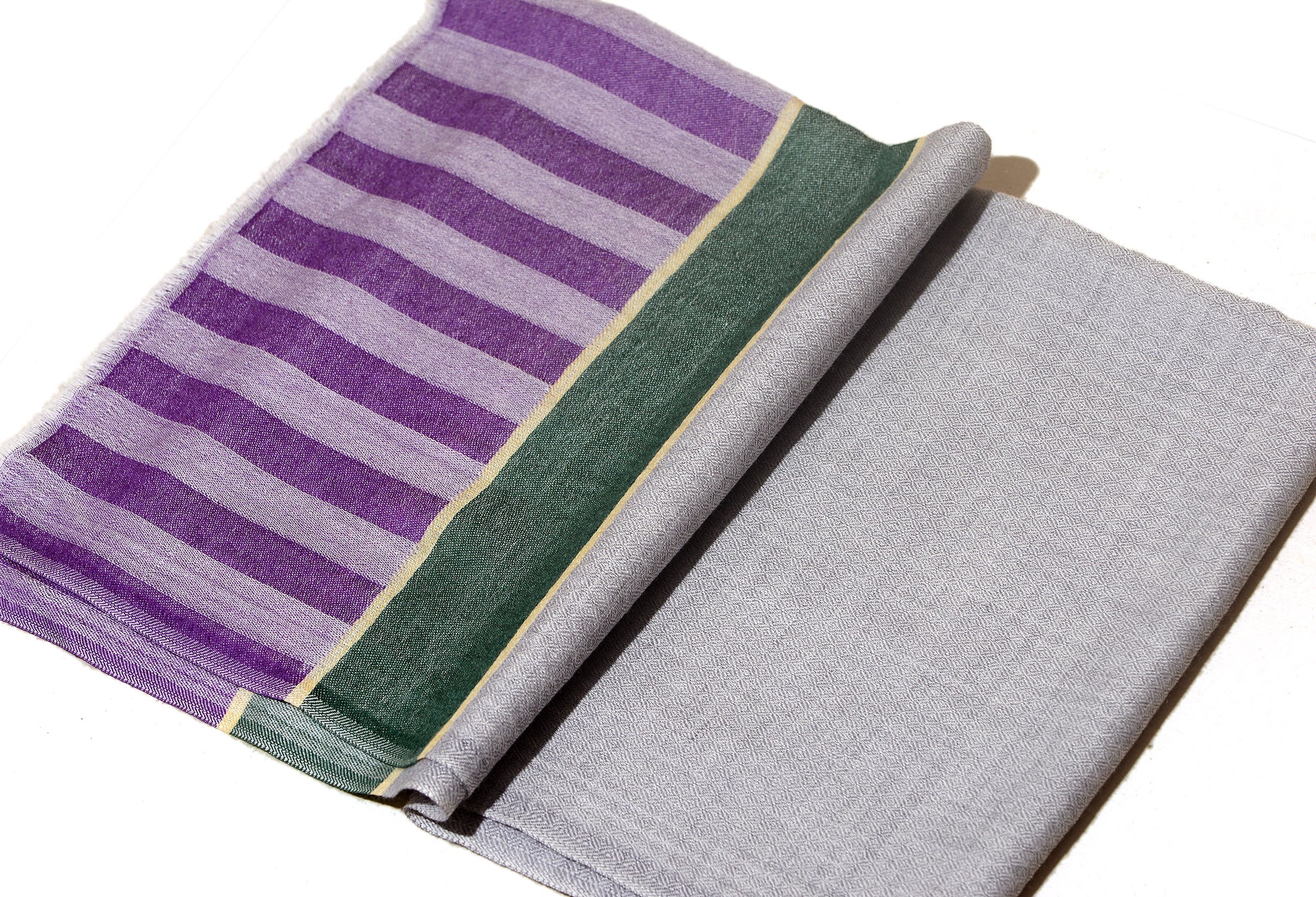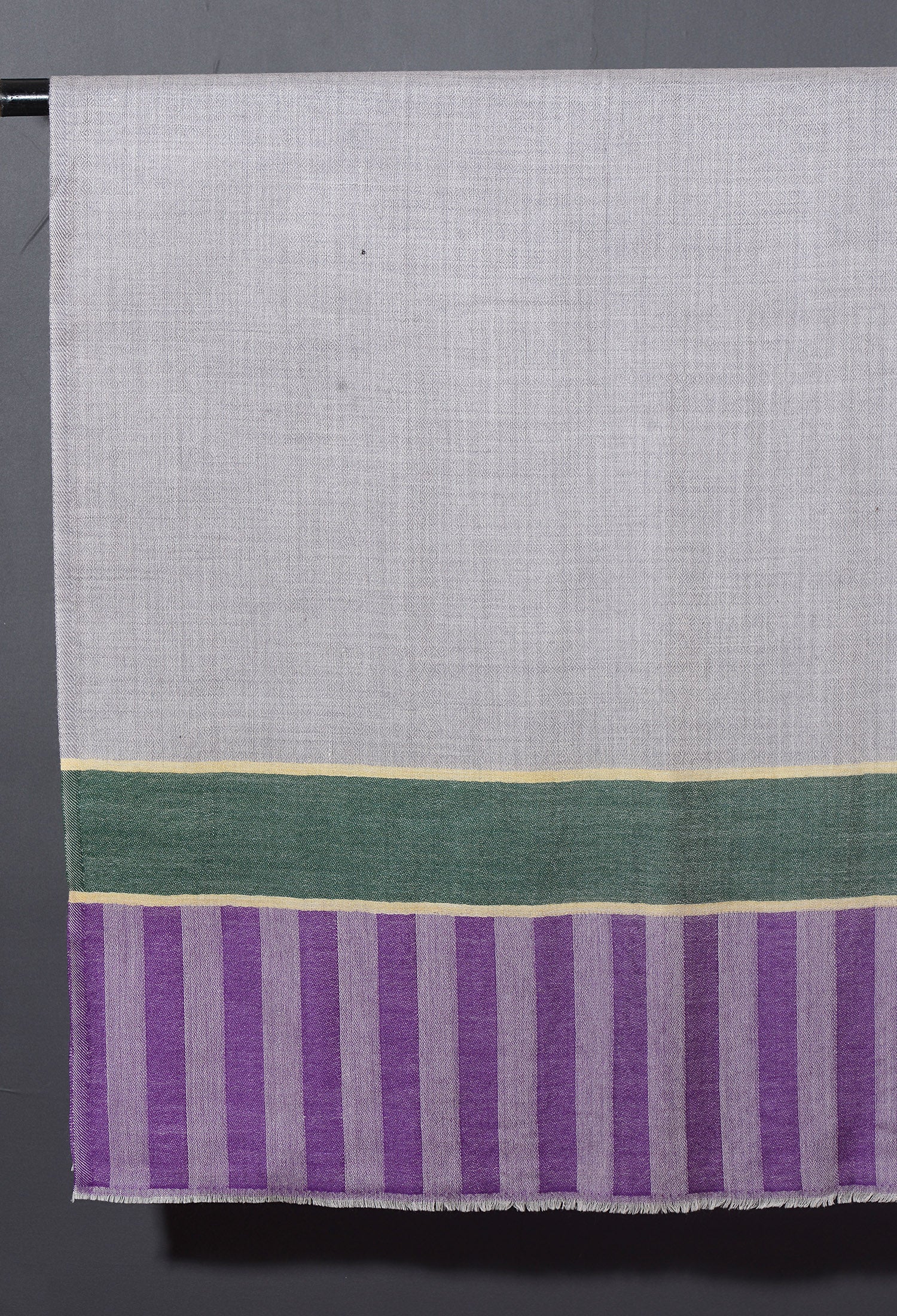 Striped Border Pashmina - Natural grey with green and purple stripes