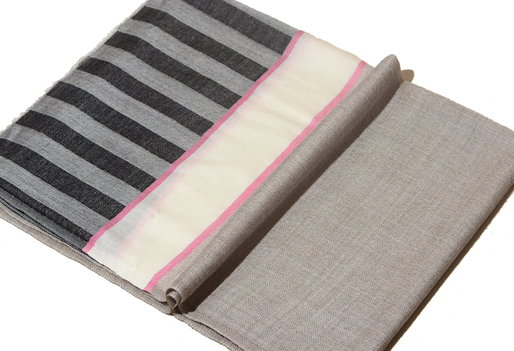 The versatility of these luxury Cashmere is unisex and can be worn in all seasons. Drape yourself in warmth with these modern weaves with a muted color and a contrast border to add elegance and a classy look.